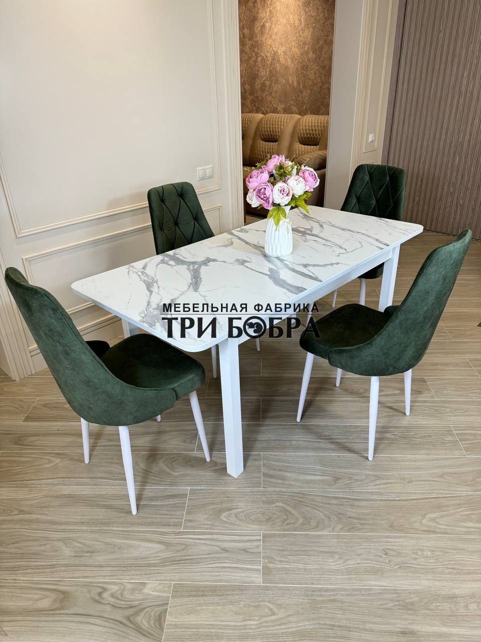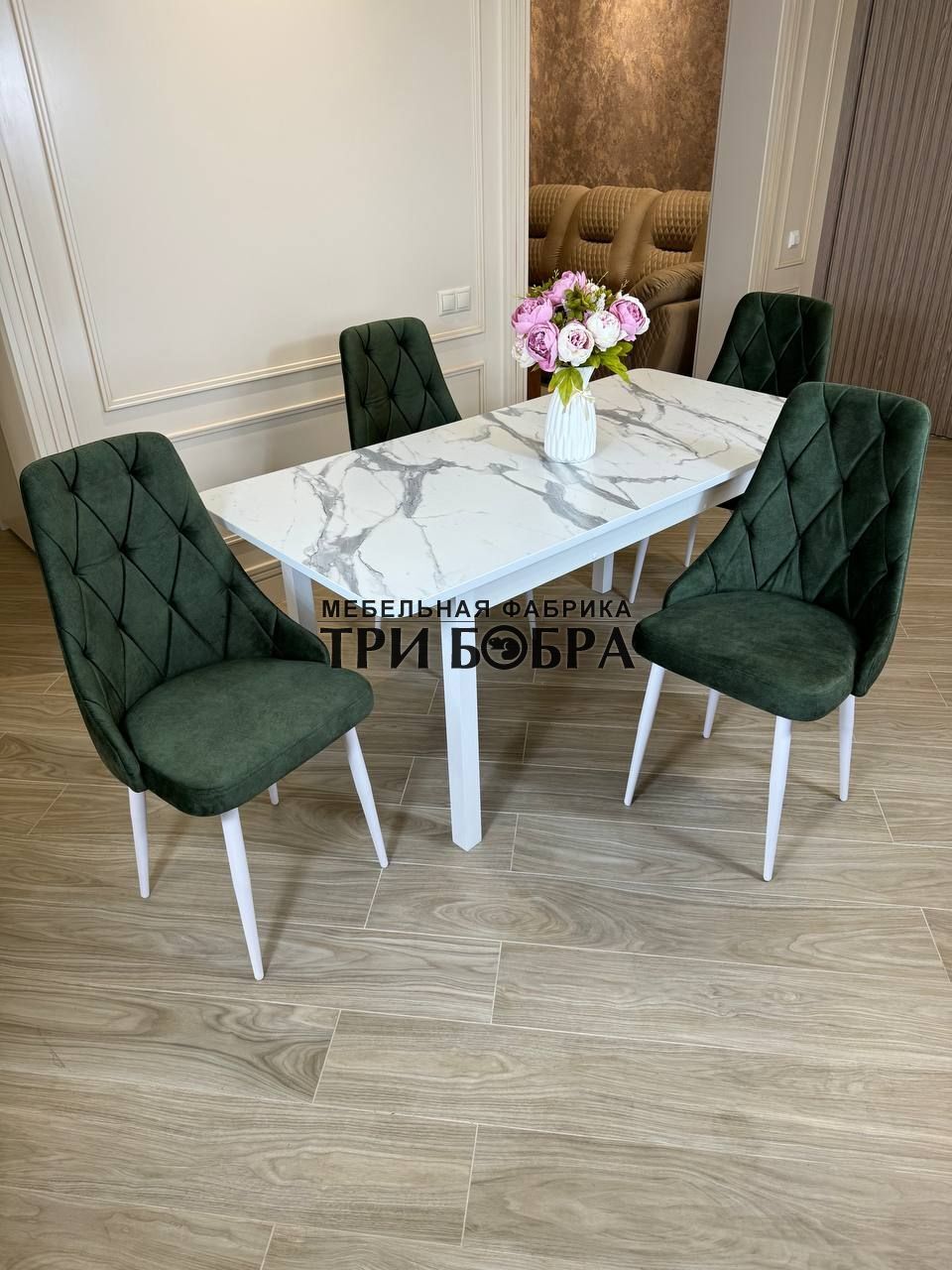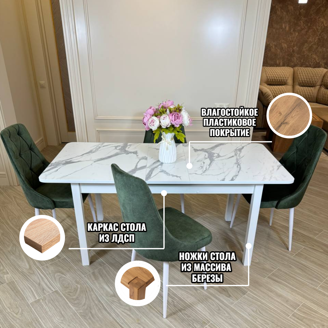 Стол обеденный раздвижной "МАКСИ" итальянский мрамор и 4 стула "ЛОНДОН"