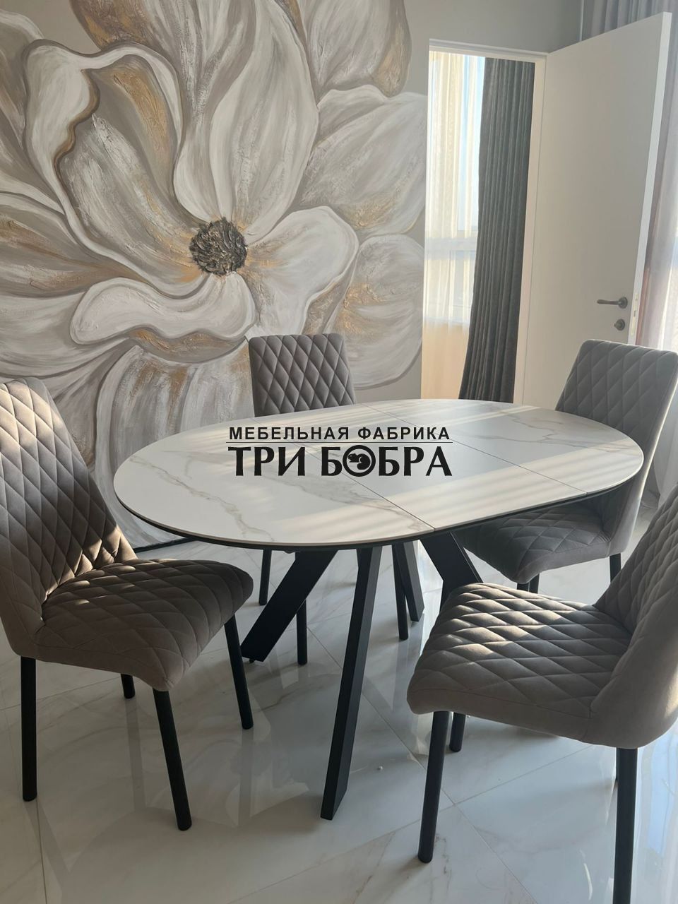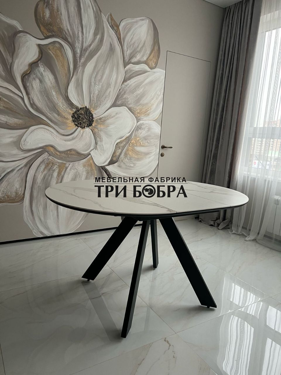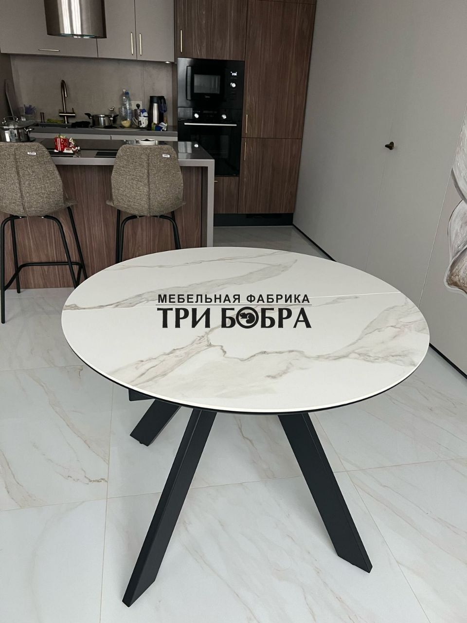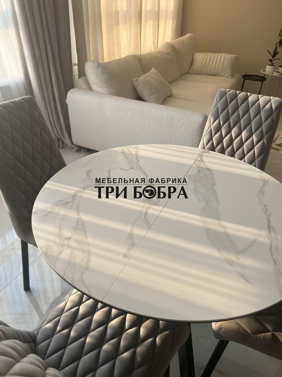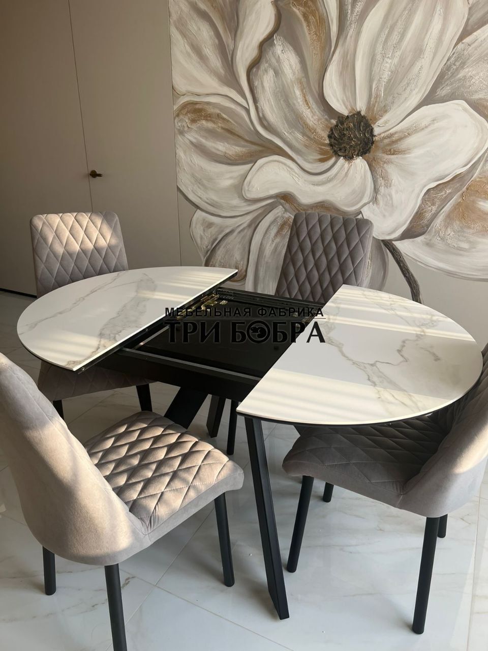 Стол обеденный раздвижной "БОНЖУР" белый мрамор — практичное решение для любого дома.