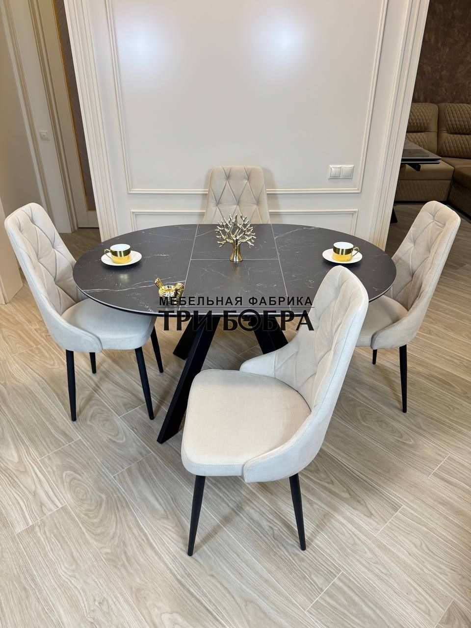Стол обеденный раздвижной "БОНЖУР" черный мрамор — практичное решение для любого дома.