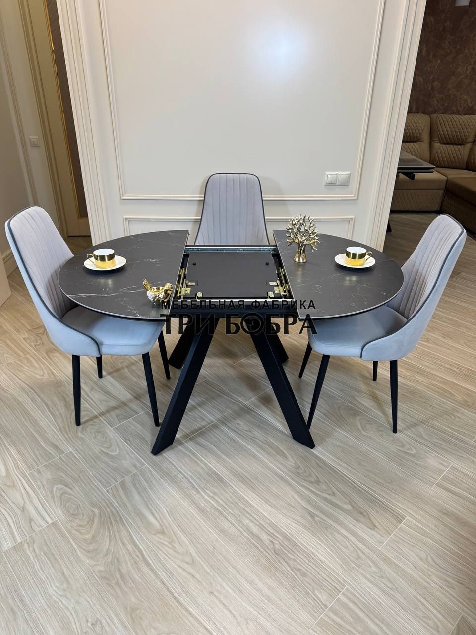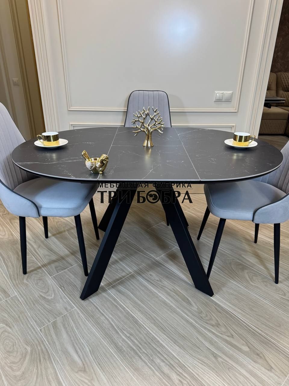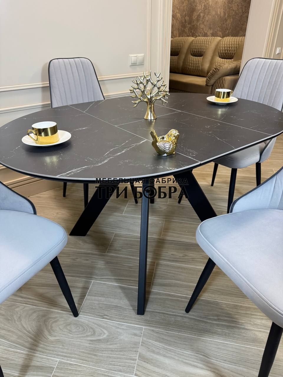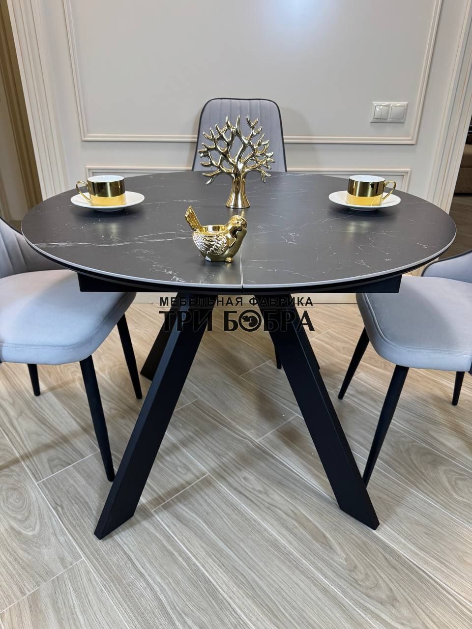 Стол обеденный раздвижной "БОНЖУР" черный мрамор — практичное решение для любого дома.