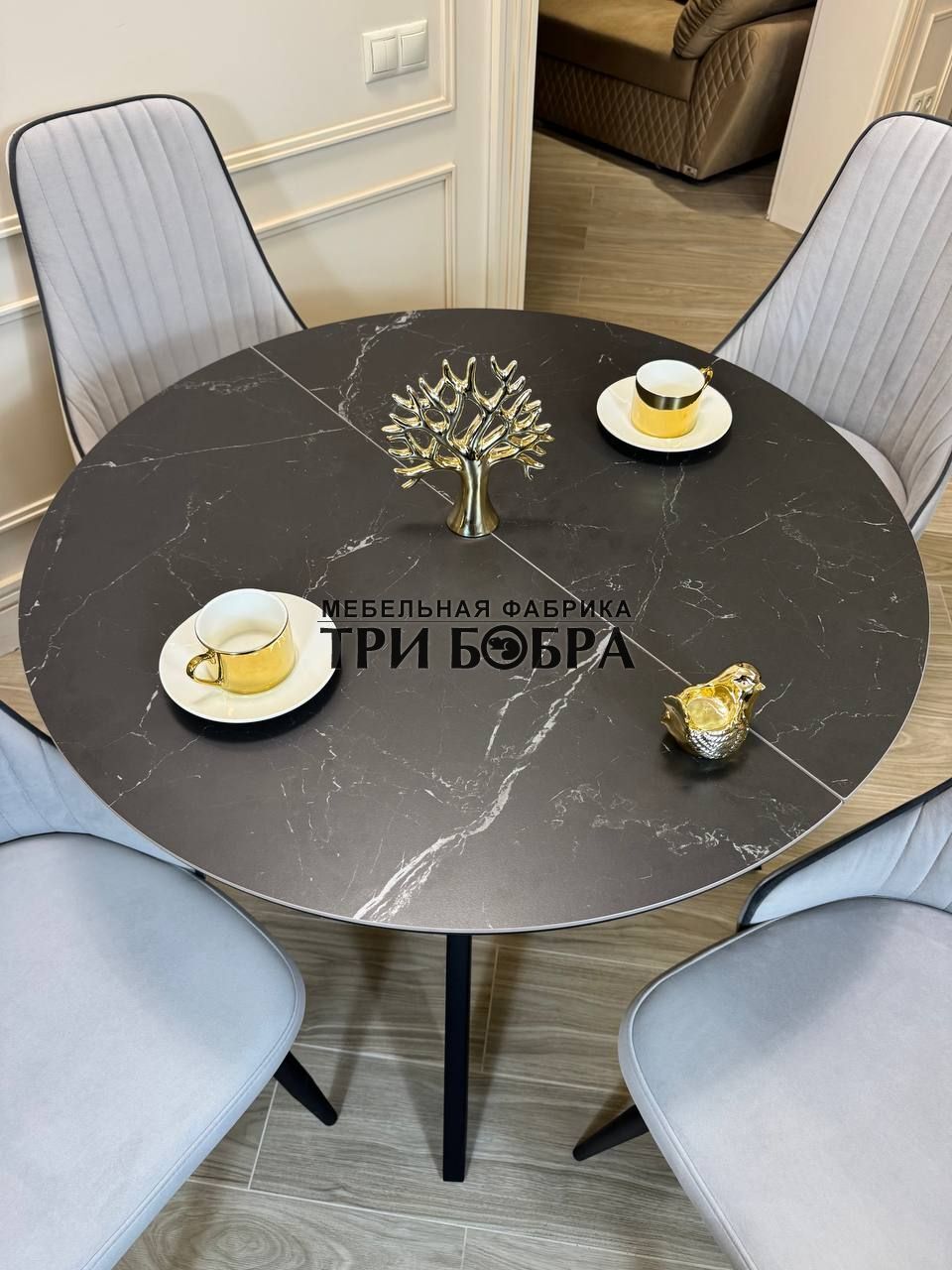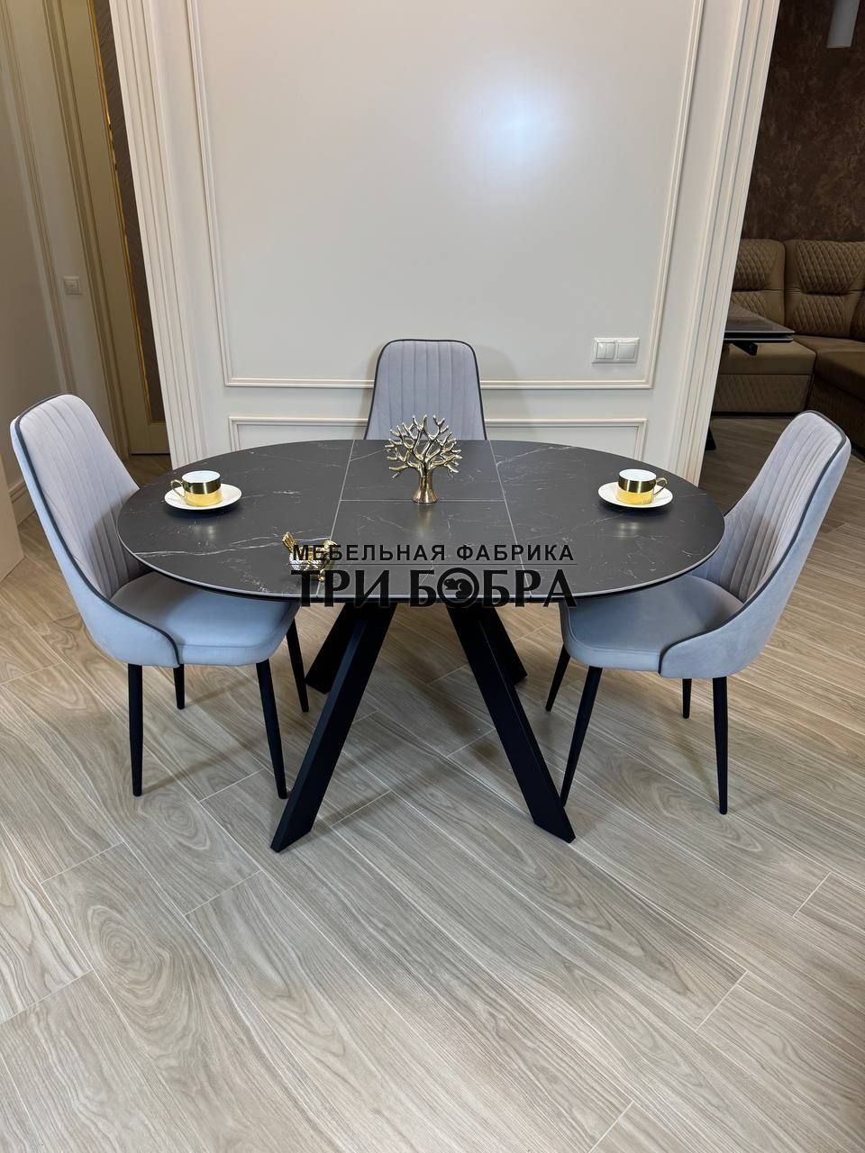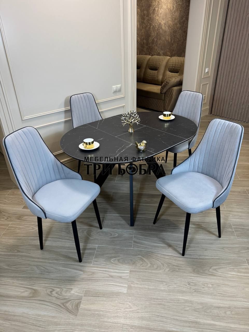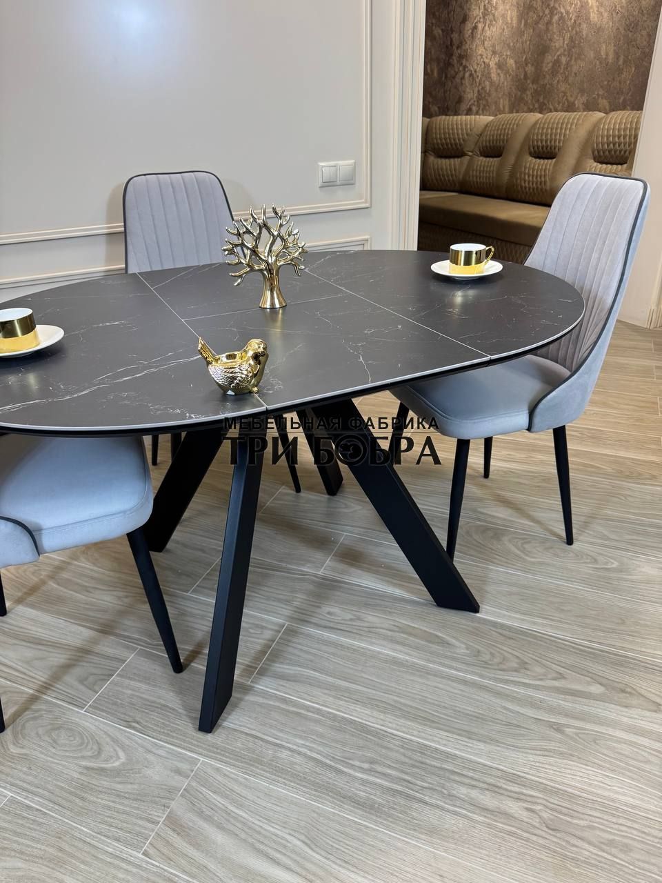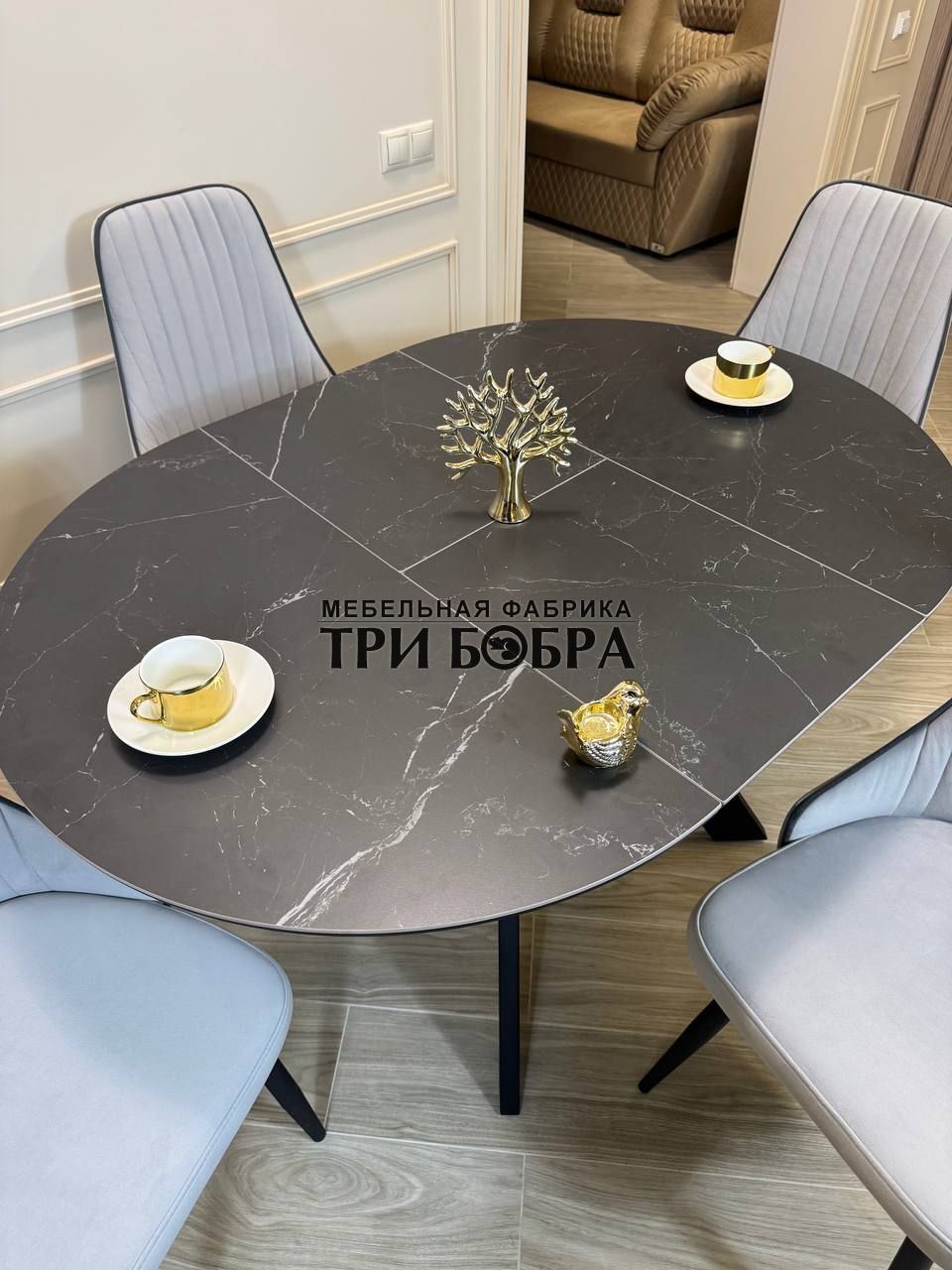 Стол обеденный раздвижной "БОНЖУР" черный мрамор — практичное решение для любого дома.
