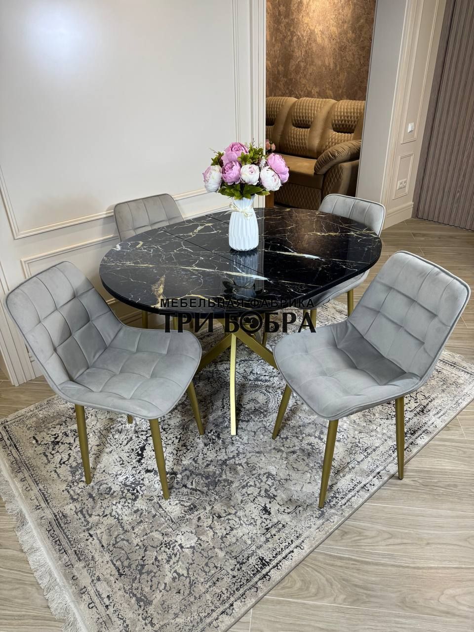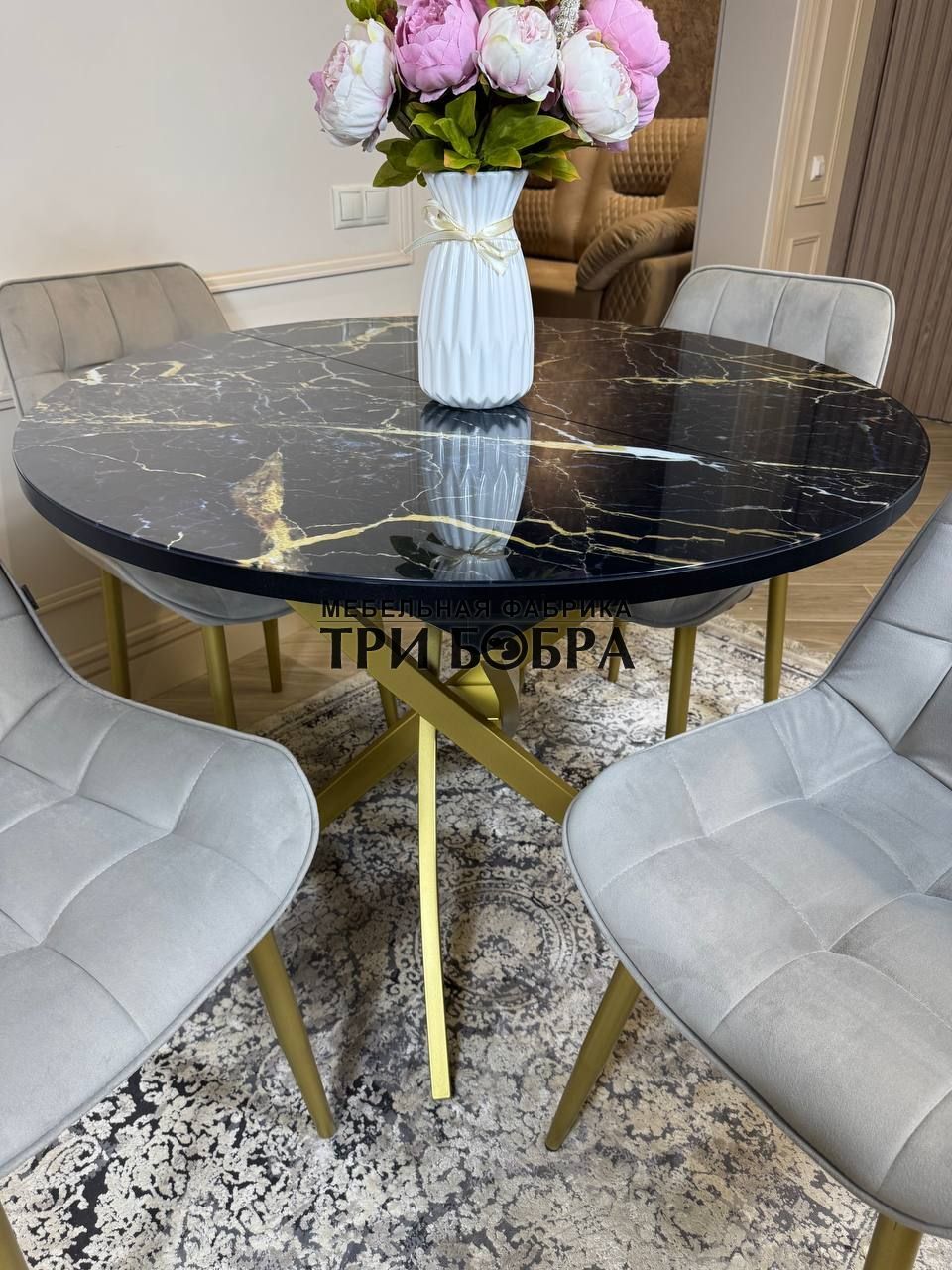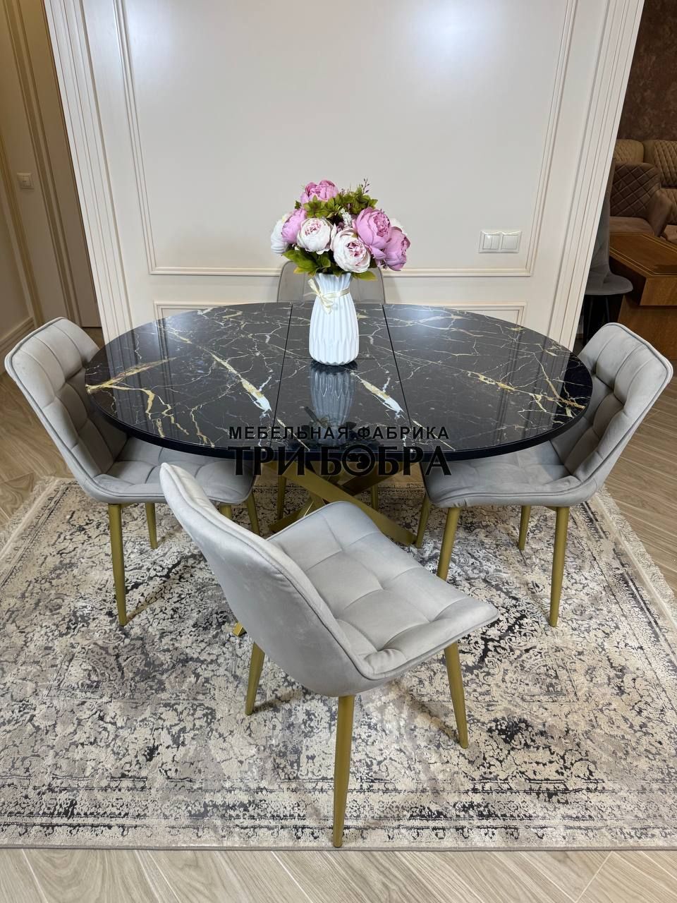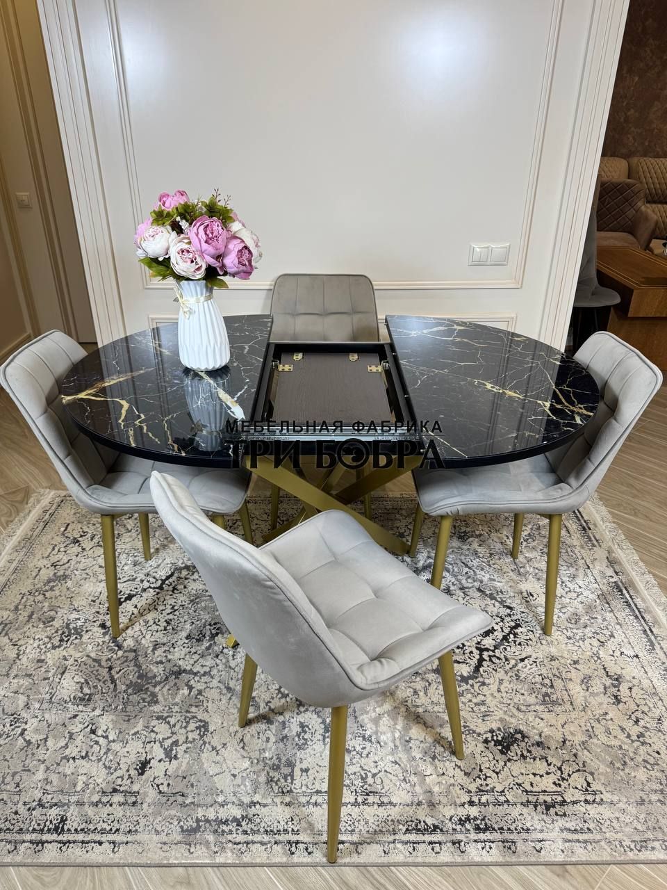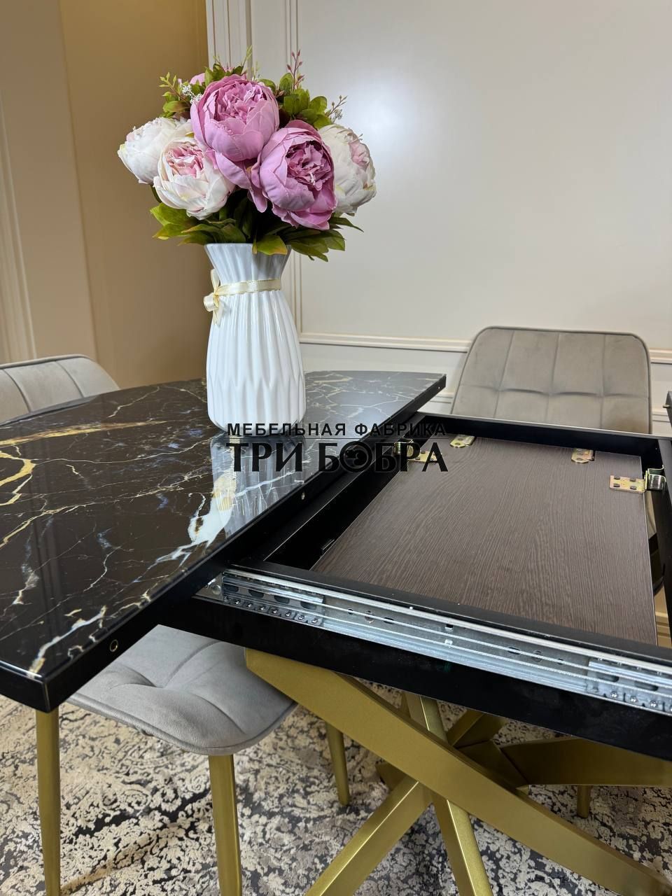 Стол обеденный раздвижной "Золотой мрамор"— практичное решение для любого дома.