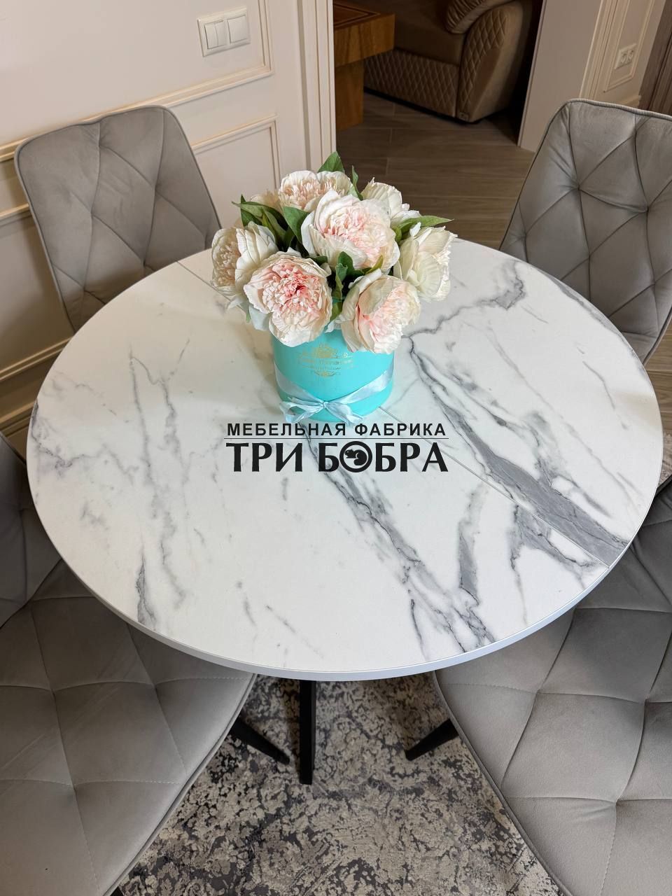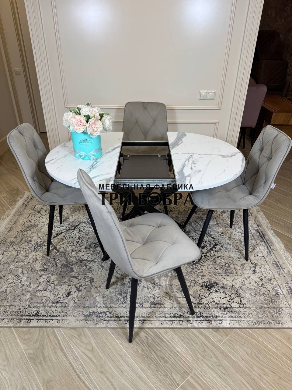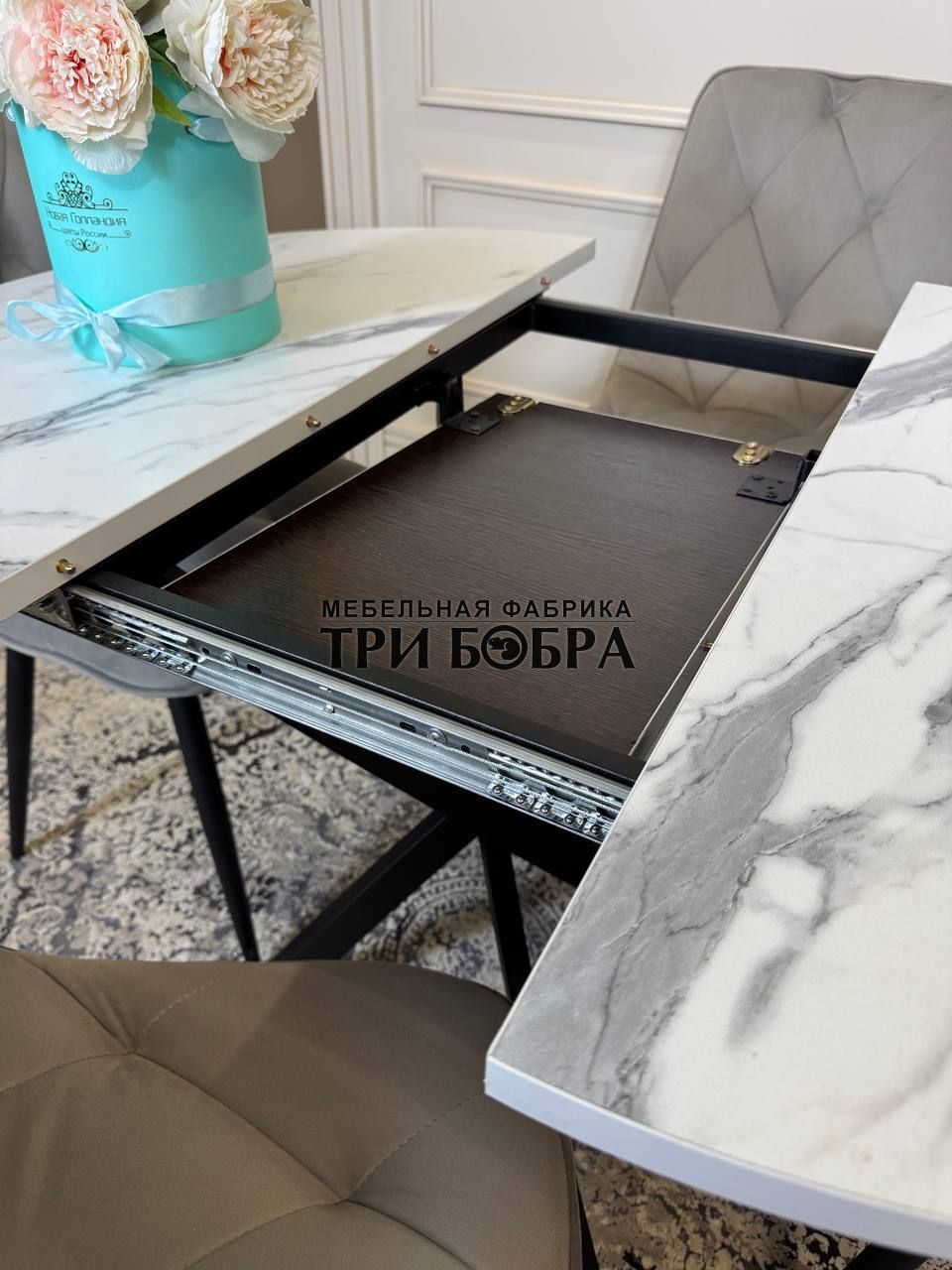 Стол обеденный раздвижной "ЛОФТ" итальянский мрамор — практичное решение для любого дома.