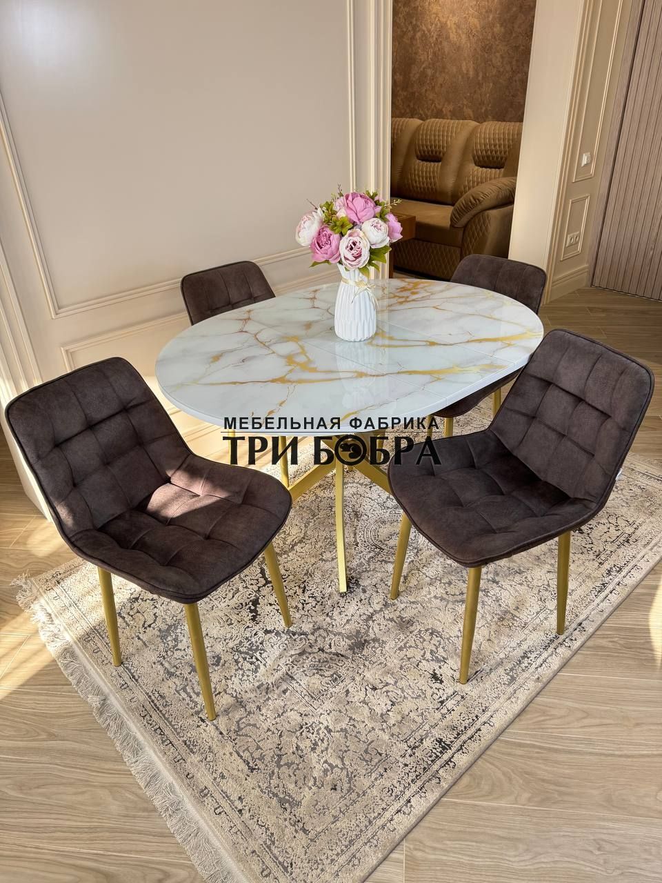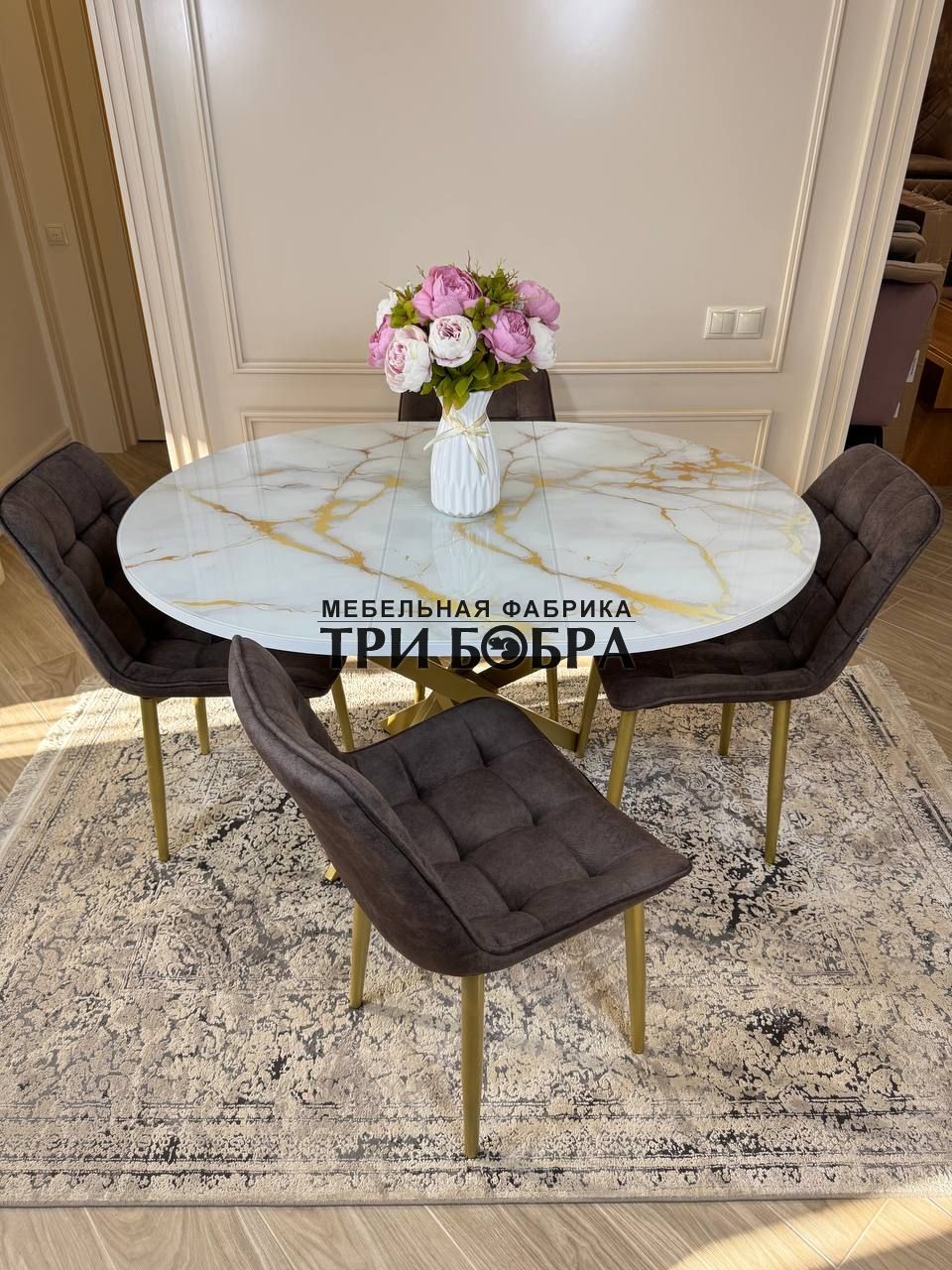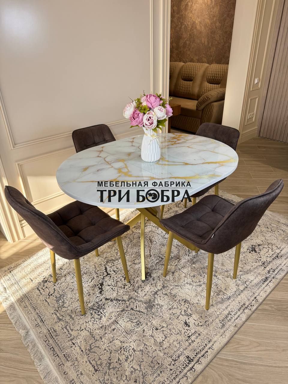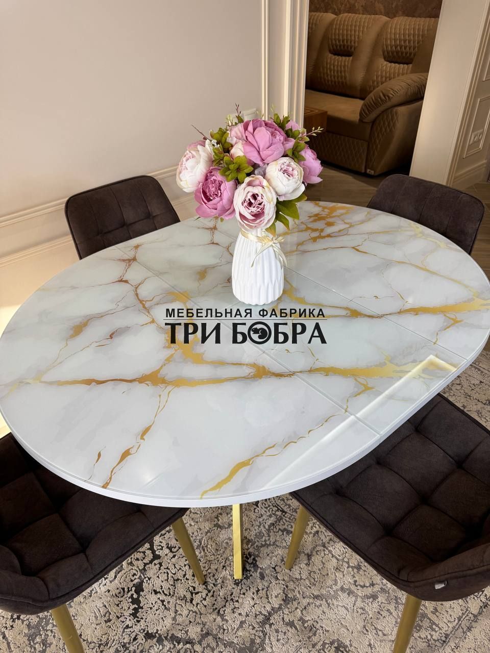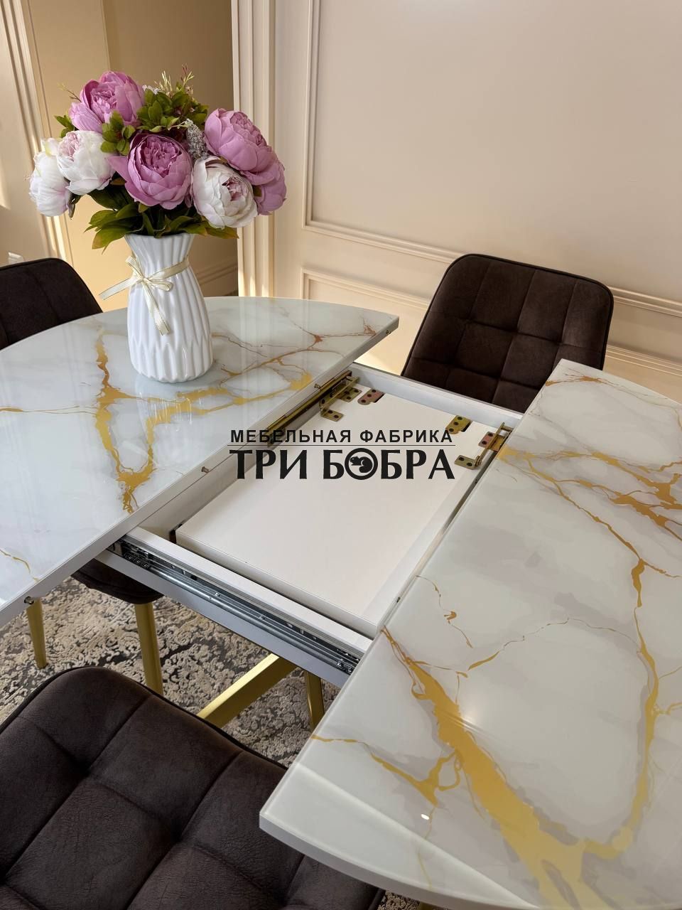 Стол обеденный раздвижной "Золотой мрамор"— практичное решение для любого дома.