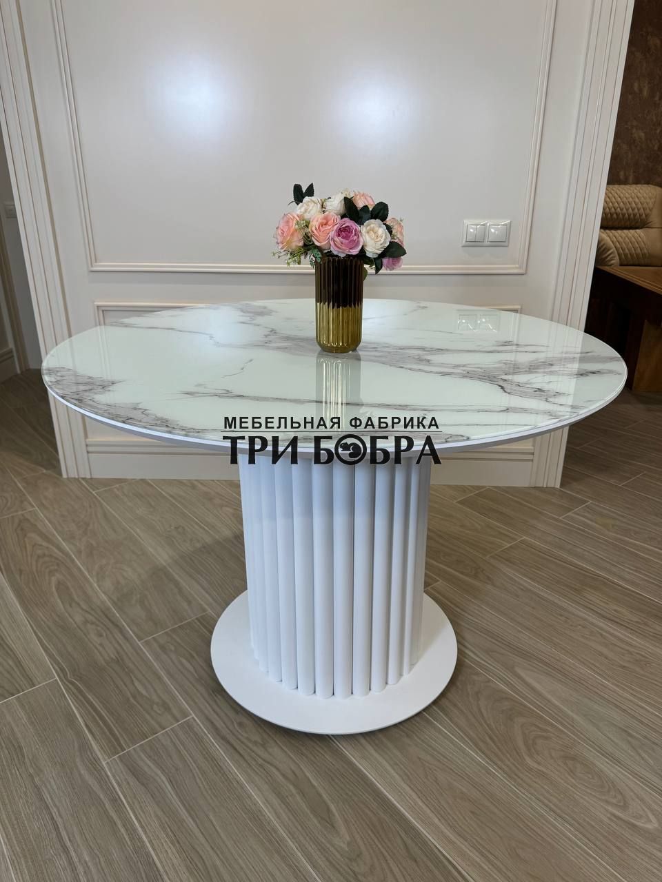 Стол круглый не раскладной "Орион" - это элегантная и стильная мебель для вашего интерьера. Его цвет белый мрамор и стальной каркас придают ему изысканный вид, который подчеркнет утонченный вкус его владельца.