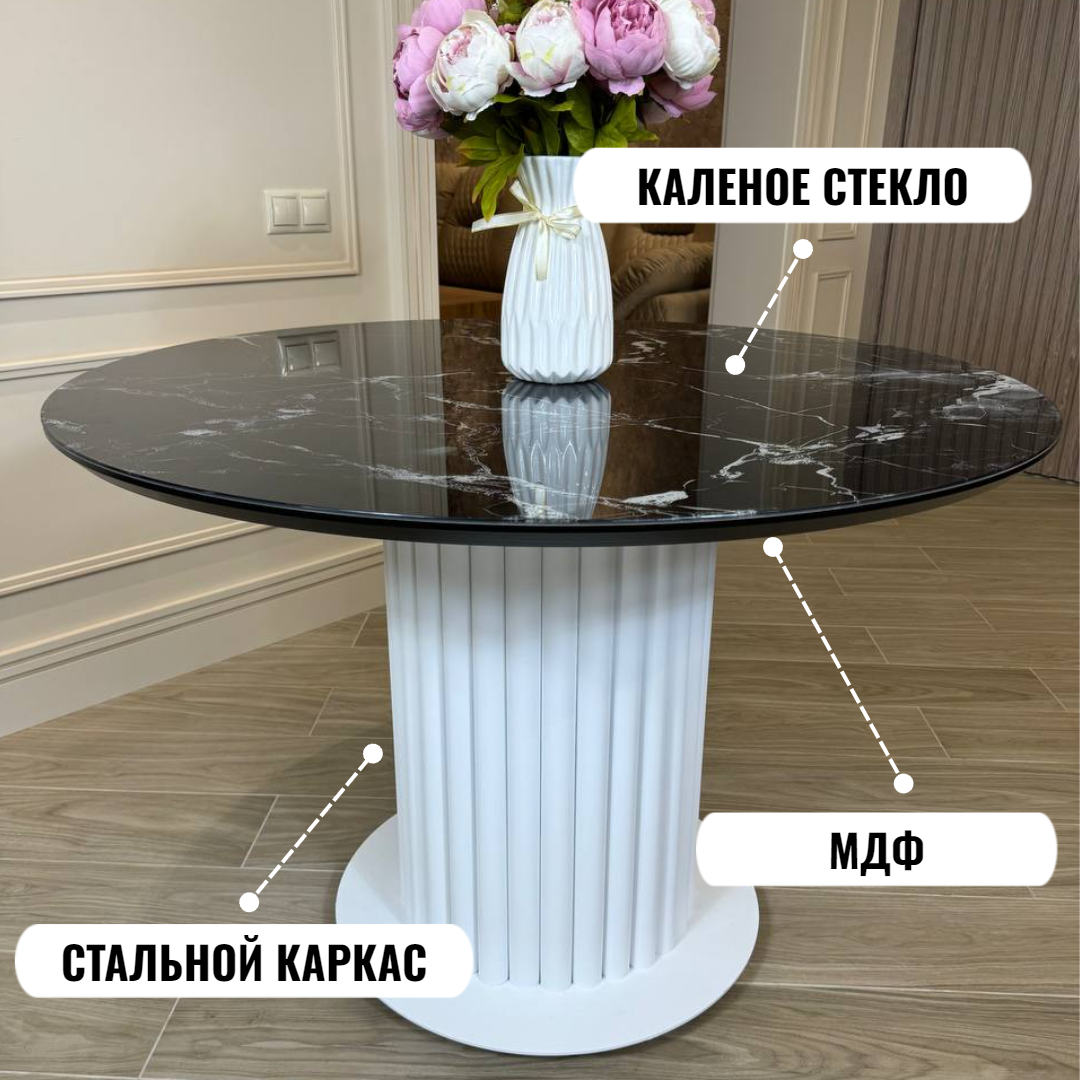 Стол круглый не раскладной "Орион" - это элегантная и стильная мебель для вашего интерьера. Его цвет белый мрамор и стальной каркас придают ему изысканный вид, который подчеркнет утонченный вкус его владельца.