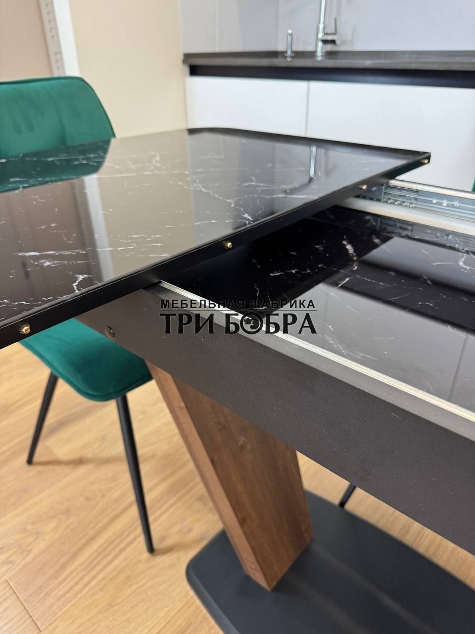 - Вставка (дополнительная секция): прямая, обеспечивает ровную, эстетичную столешницу в разложенном виде