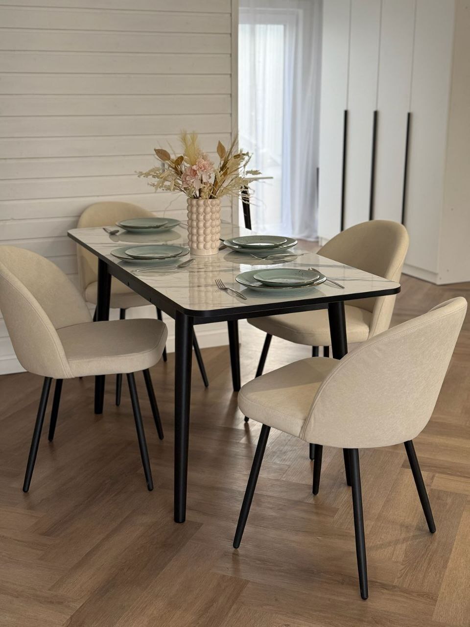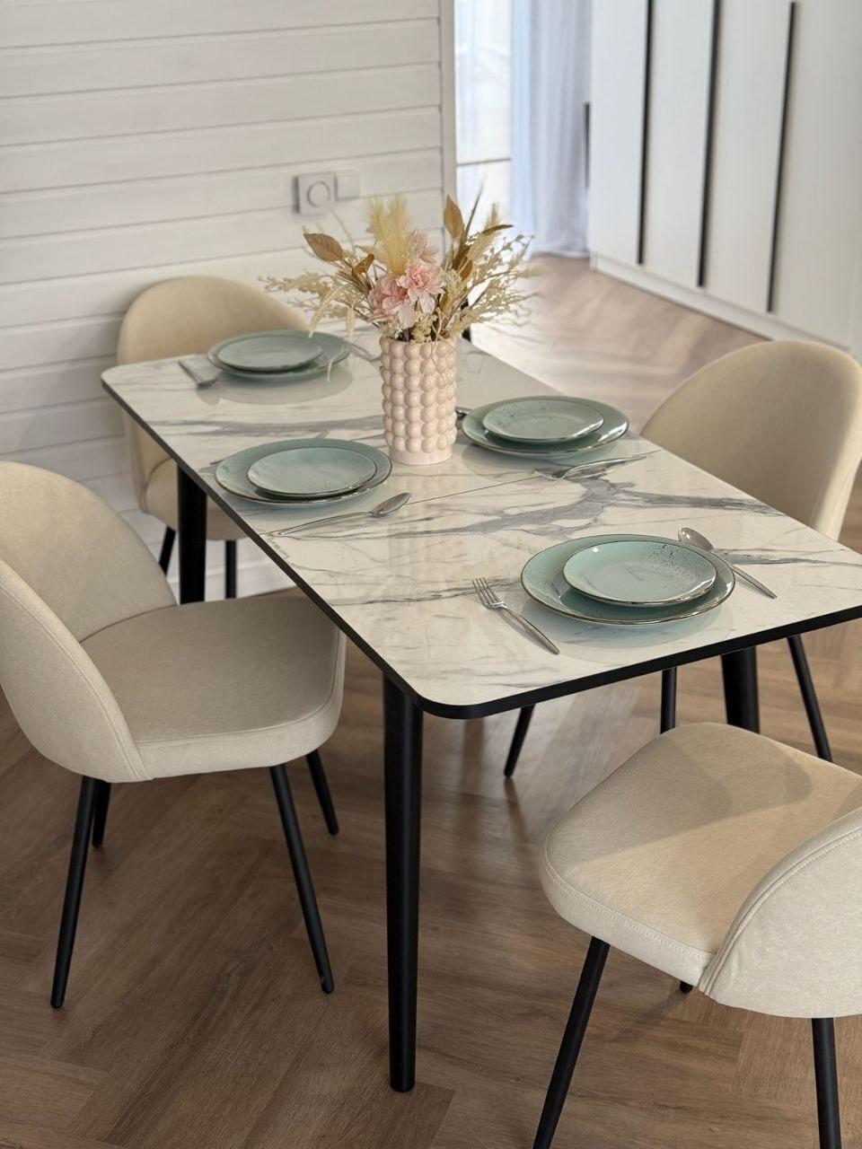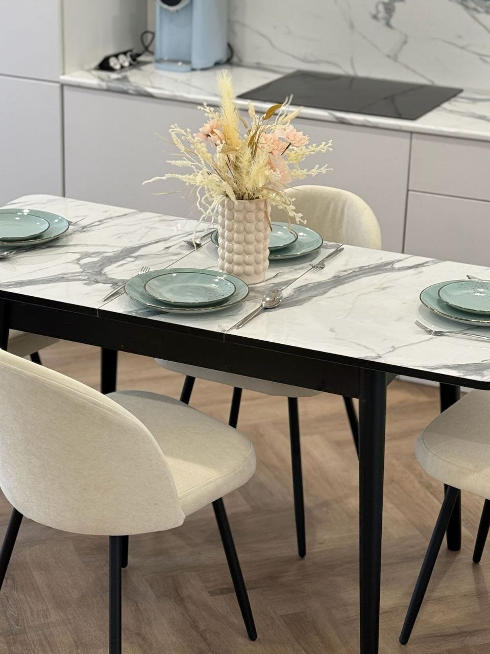 Стол универсальный раздвижной белый мрамор с черной царгой и окантовкой - отличный выбор для Вашей кухни или гостиной!