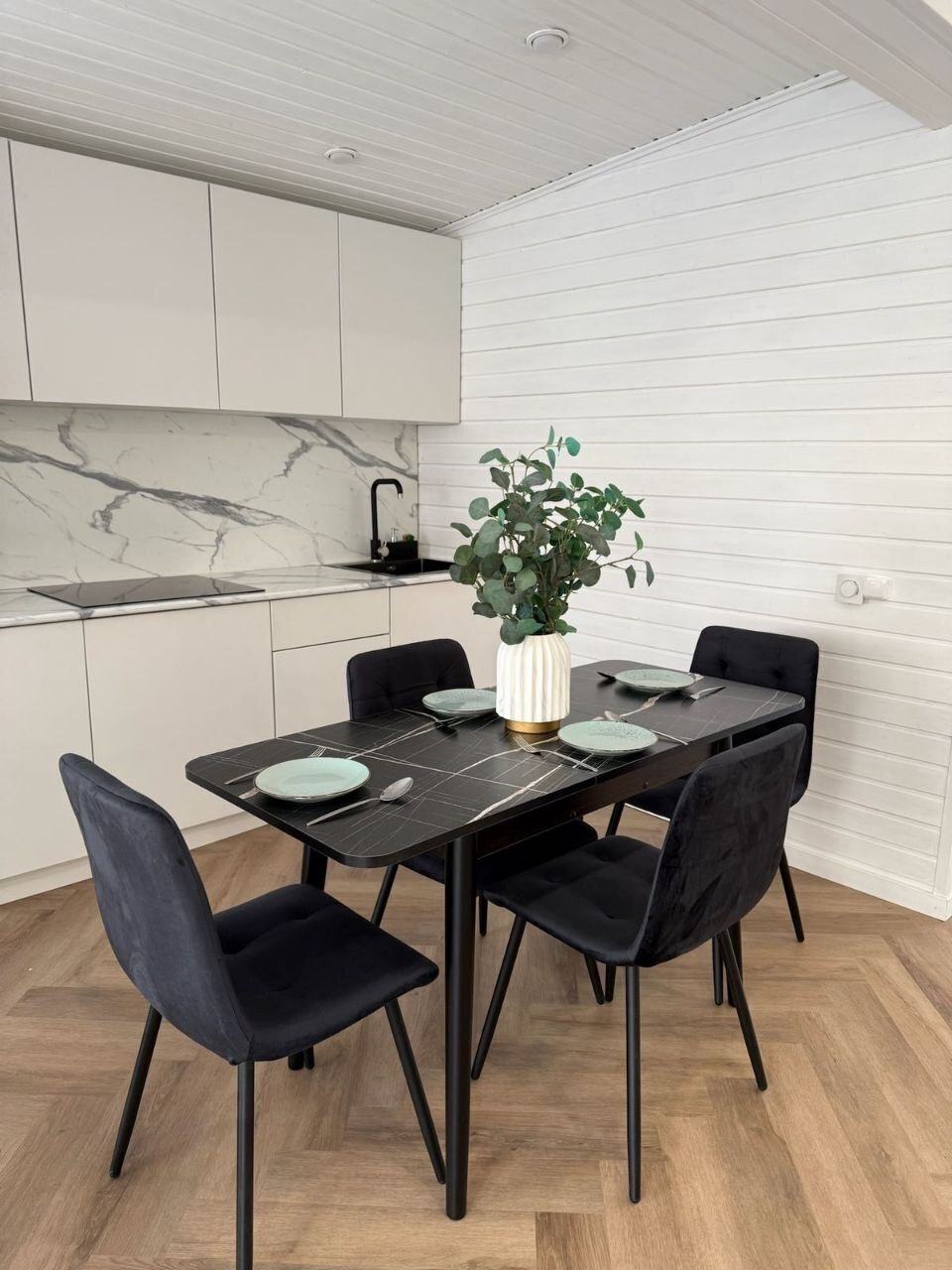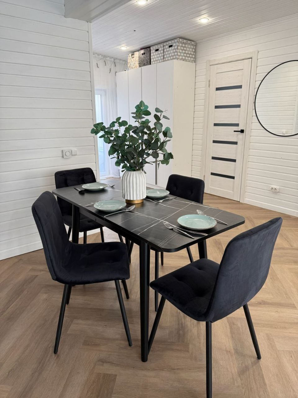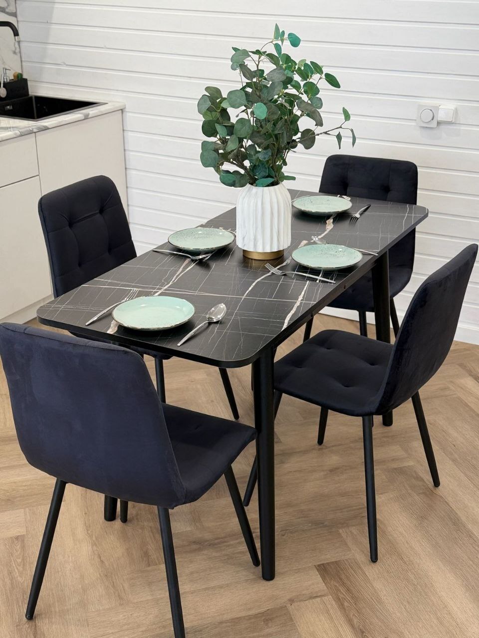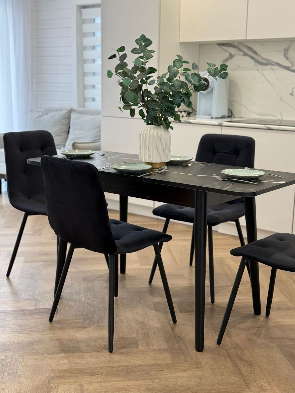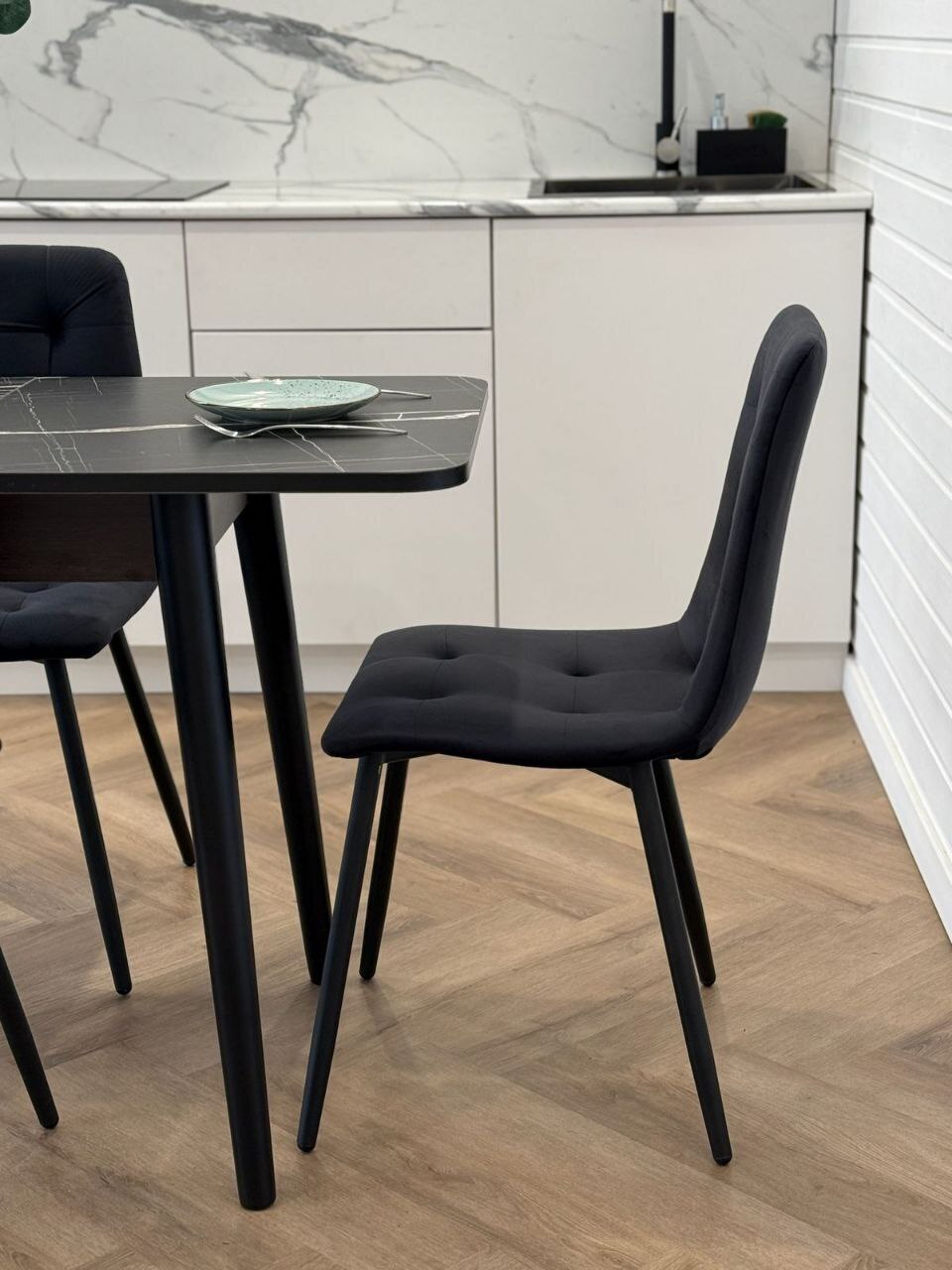 Стулья Дублин в черном цвете - анатомически изогнутая спинка обеспечивает максимальную поддержку вашей спины, гарантируя приятное и удобное сидение. Прочный мебельный велюр с легкостью поддается чистке и устойчив к истиранию. Нагрузка до 130кг на стул, ножки сварной металлокаркас.