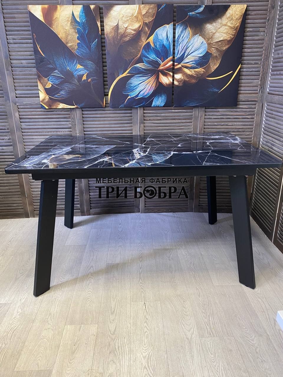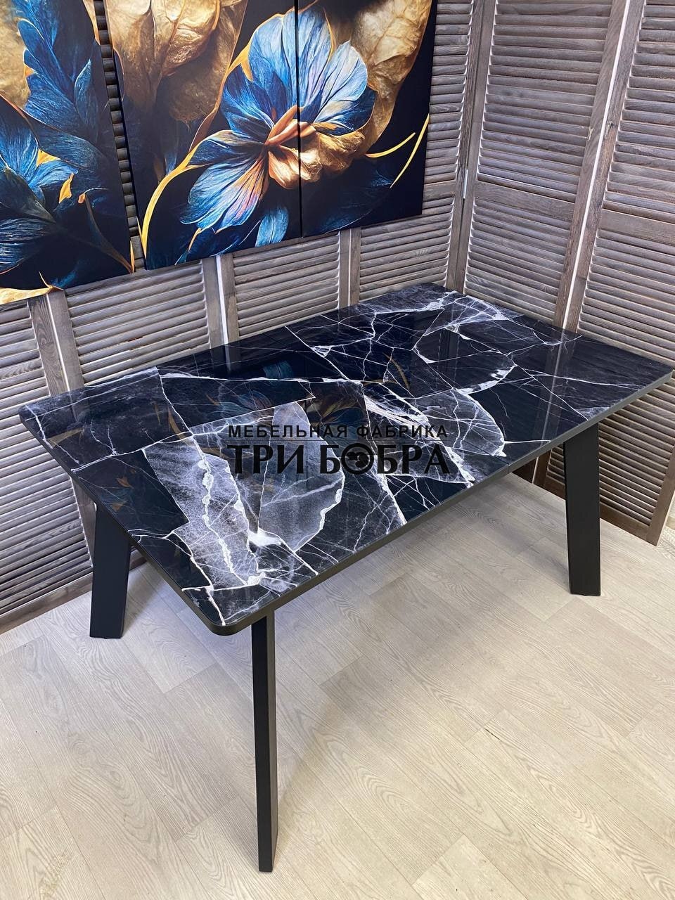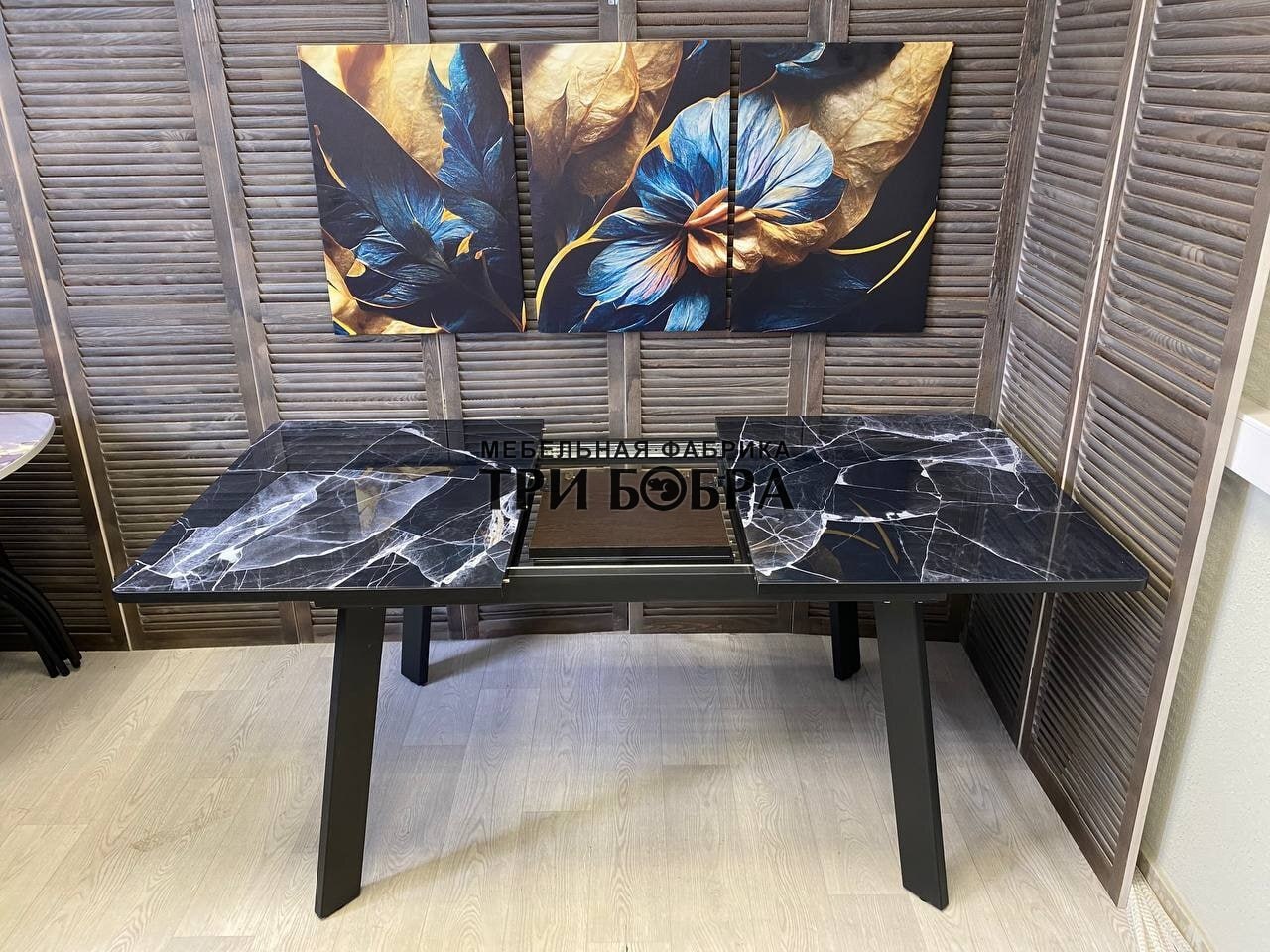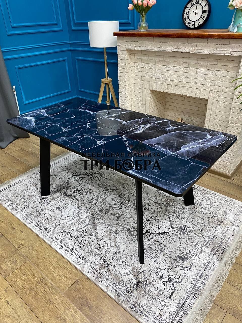 Кухонный раздвижной стол "Гранд" черный мрамор- это практичное решение для вашего дома! Он не только устойчив и тяжелый, но также обладает стильным и современным дизайном.