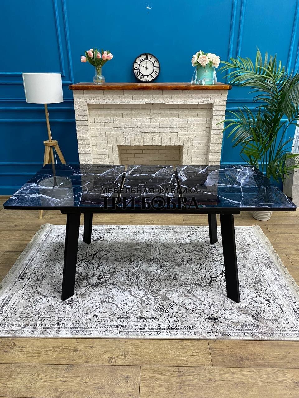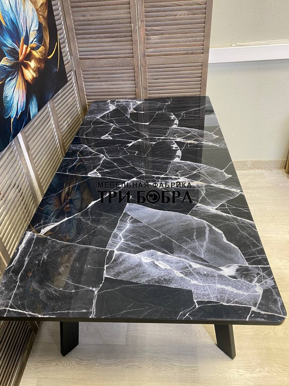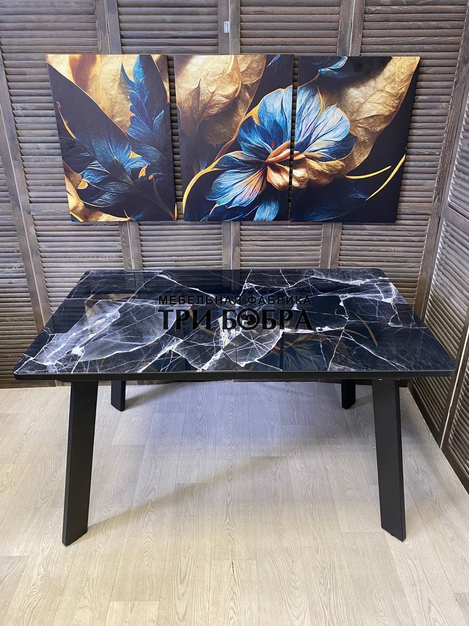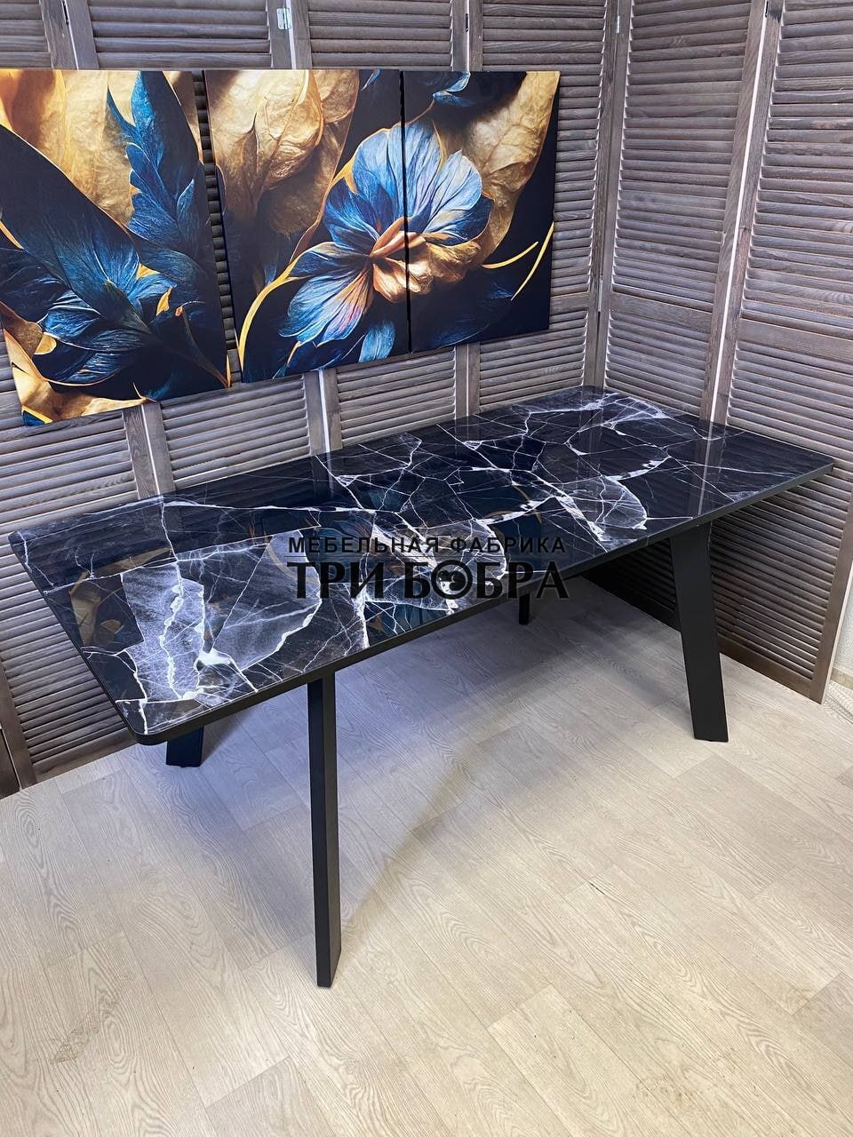 Кухонный раздвижной стол "Гранд" черный мрамор- это практичное решение для вашего дома! Он не только устойчив и тяжелый, но также обладает стильным и современным дизайном.