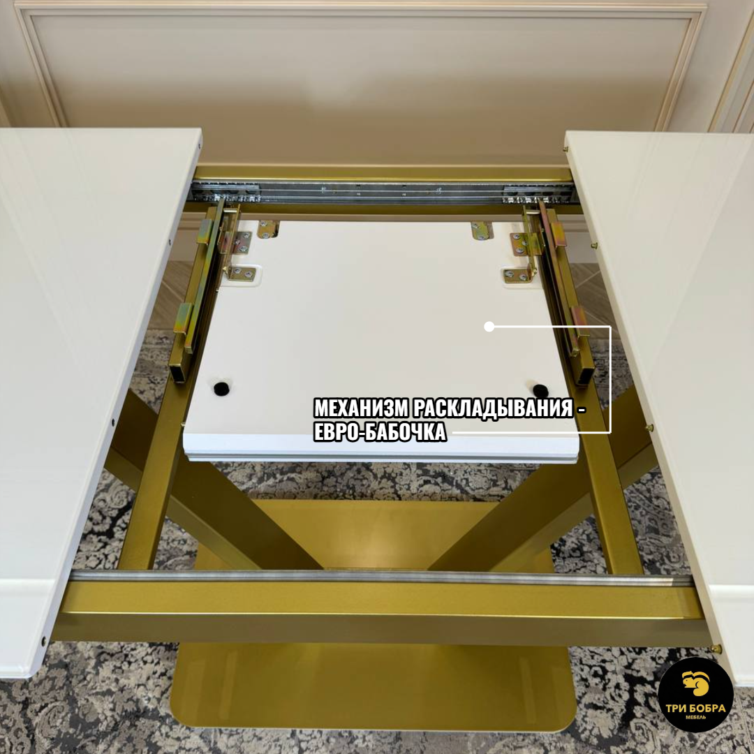 Современный механизм "бабочка" позволяет раскладывать стол одному человеку без усилий! Столешница выполнена из плиты МДФ, покрыта стеклом. Поверхность стола влагостойкая: она не боится влаги, устойчива к перепадам температуры и имеет большой срок службы.