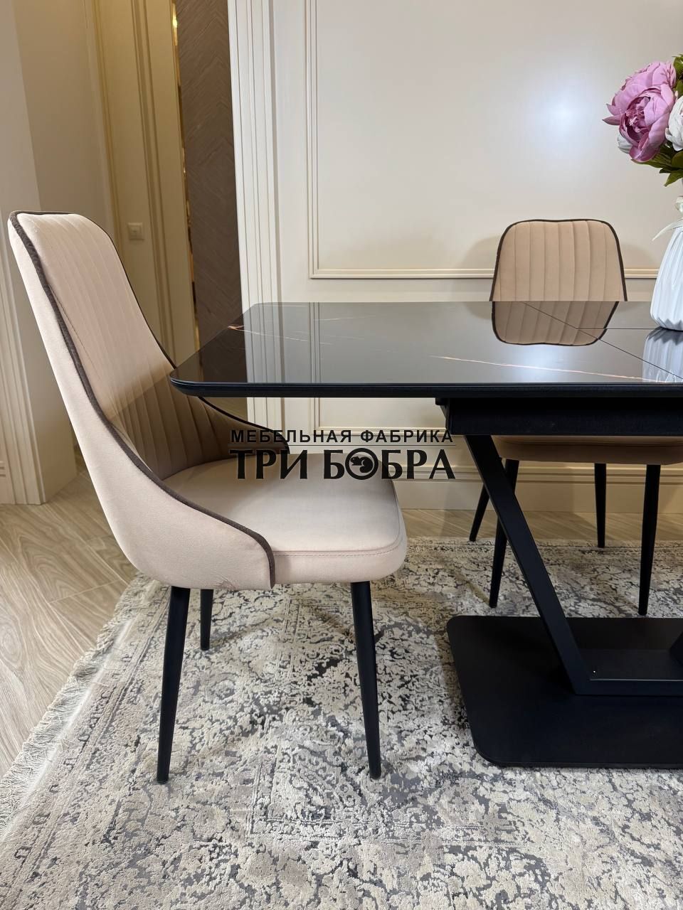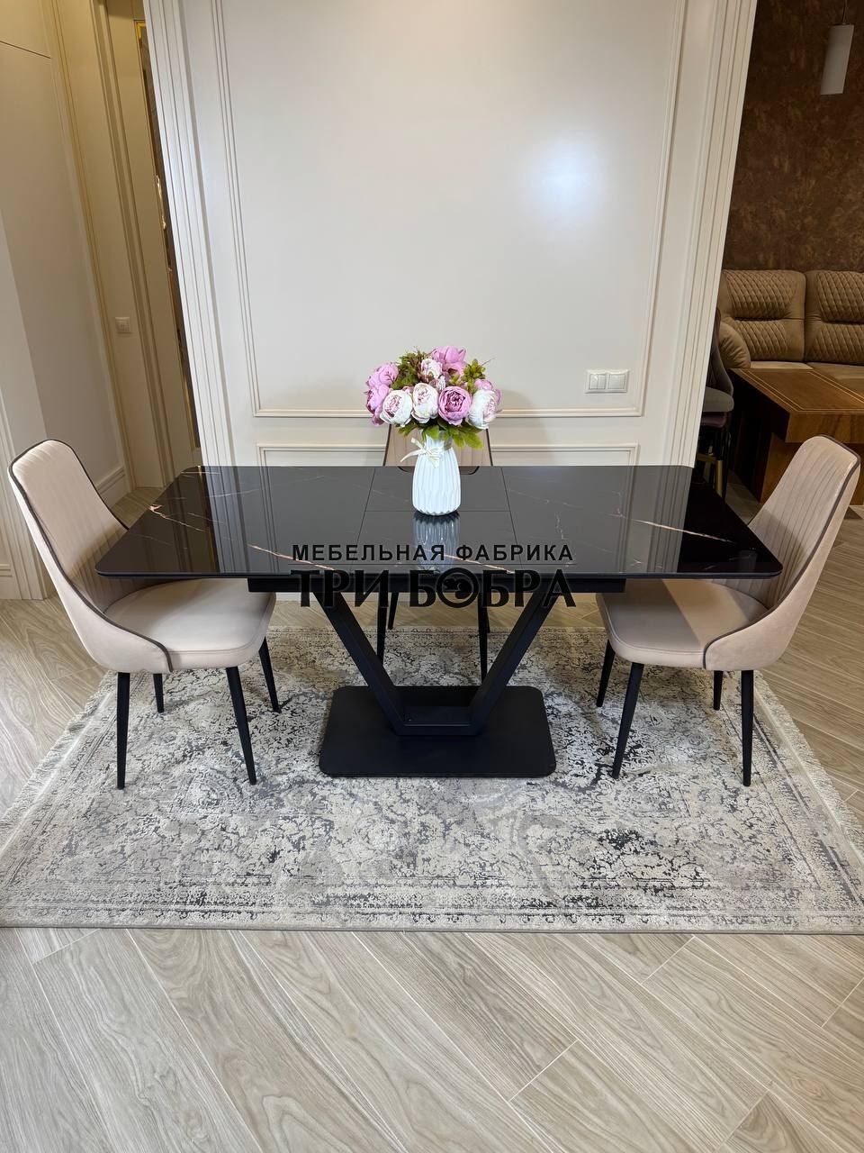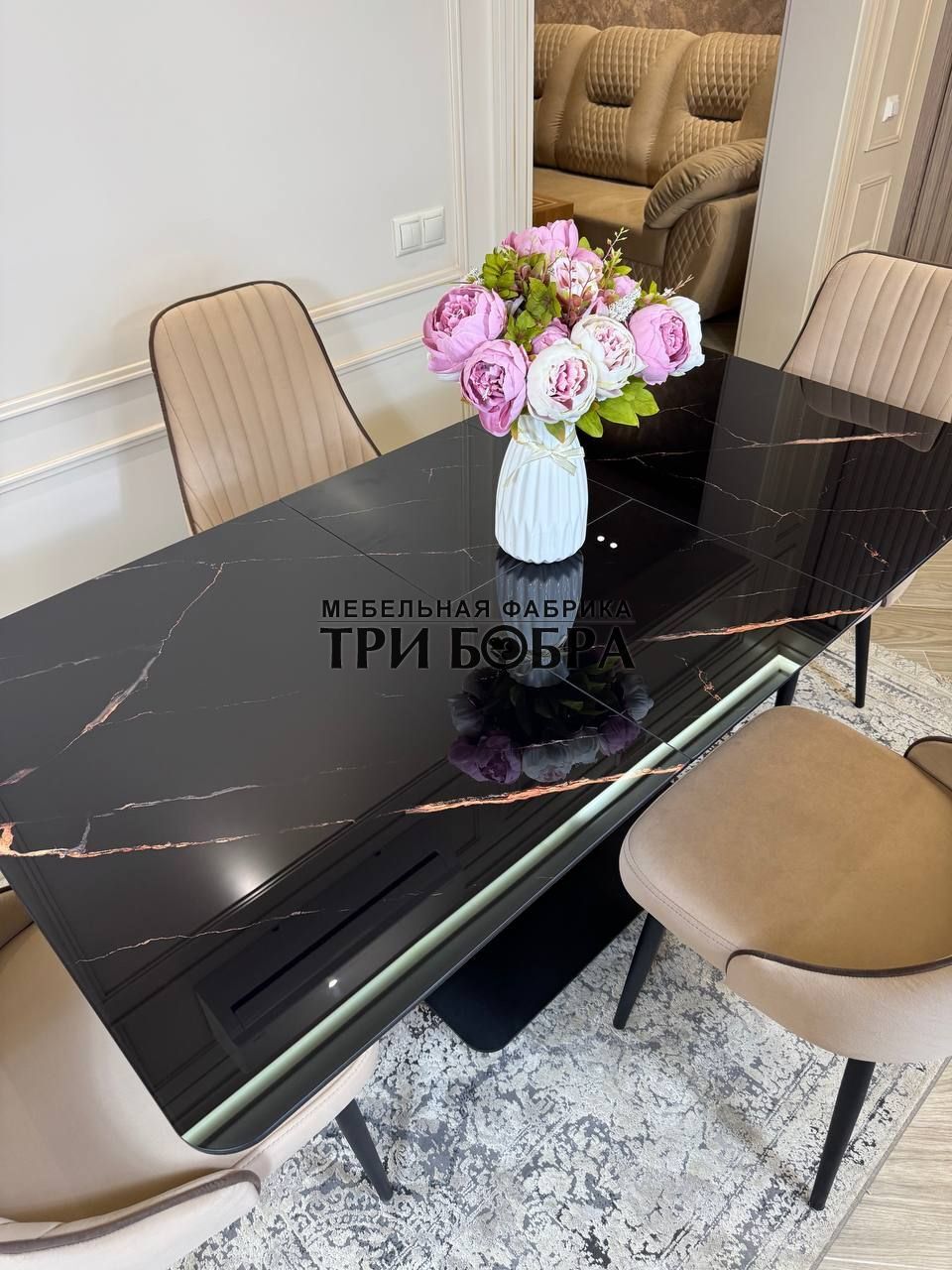 Стол обеденный раздвижной "ЛЕОН" черный мрамор и 4 стула "Сорренто"