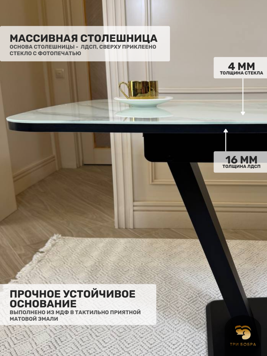 - Столешница: ЛДСП 16 мм + стекло 4 мм - прочная и влагостойкая