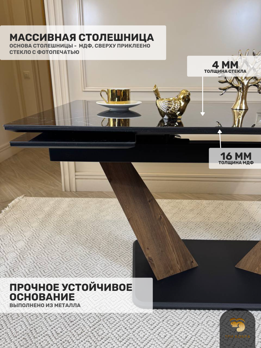 Современный механизм "торцевой" позволяет раскладывать стол одному человеку без усилий! Столешница выполнена из плиты МДФ, покрыта стеклом. Поверхность стола влагостойкая: она не боится влаги, устойчива к перепадам температуры и имеет большой срок службы.