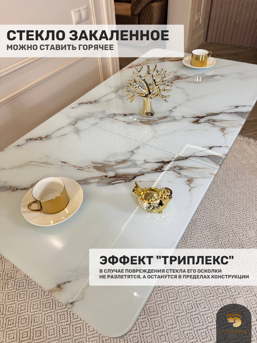 Удобная столешница стола изготовлена из каленного стекла, что делает его идеальным для использования в кухонных условиях.