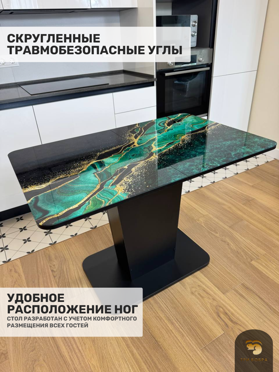 Удобная столешница стола изготовлена из каленного стекла, что делает его идеальным для использования в кухонных условиях.