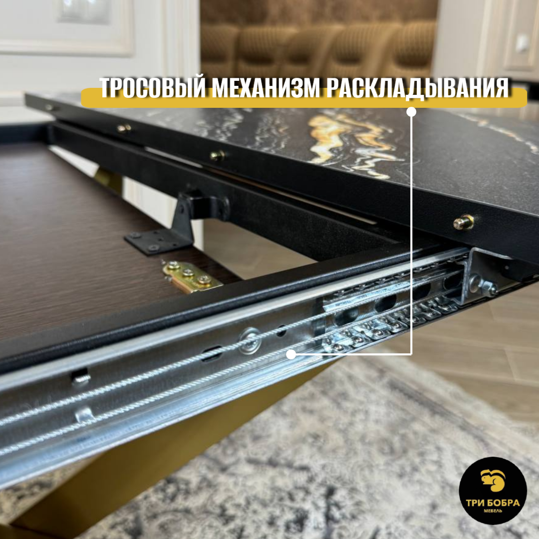Главной особенностью этого стола является его механизм раскладывания, благодаря которому можно разложить стол всего одному человеку, не прикладывая значительных усилий. Теперь можно легко и быстро увеличить площадь стола, чтобы вместить большее количество гостей или использовать его для различных задач.