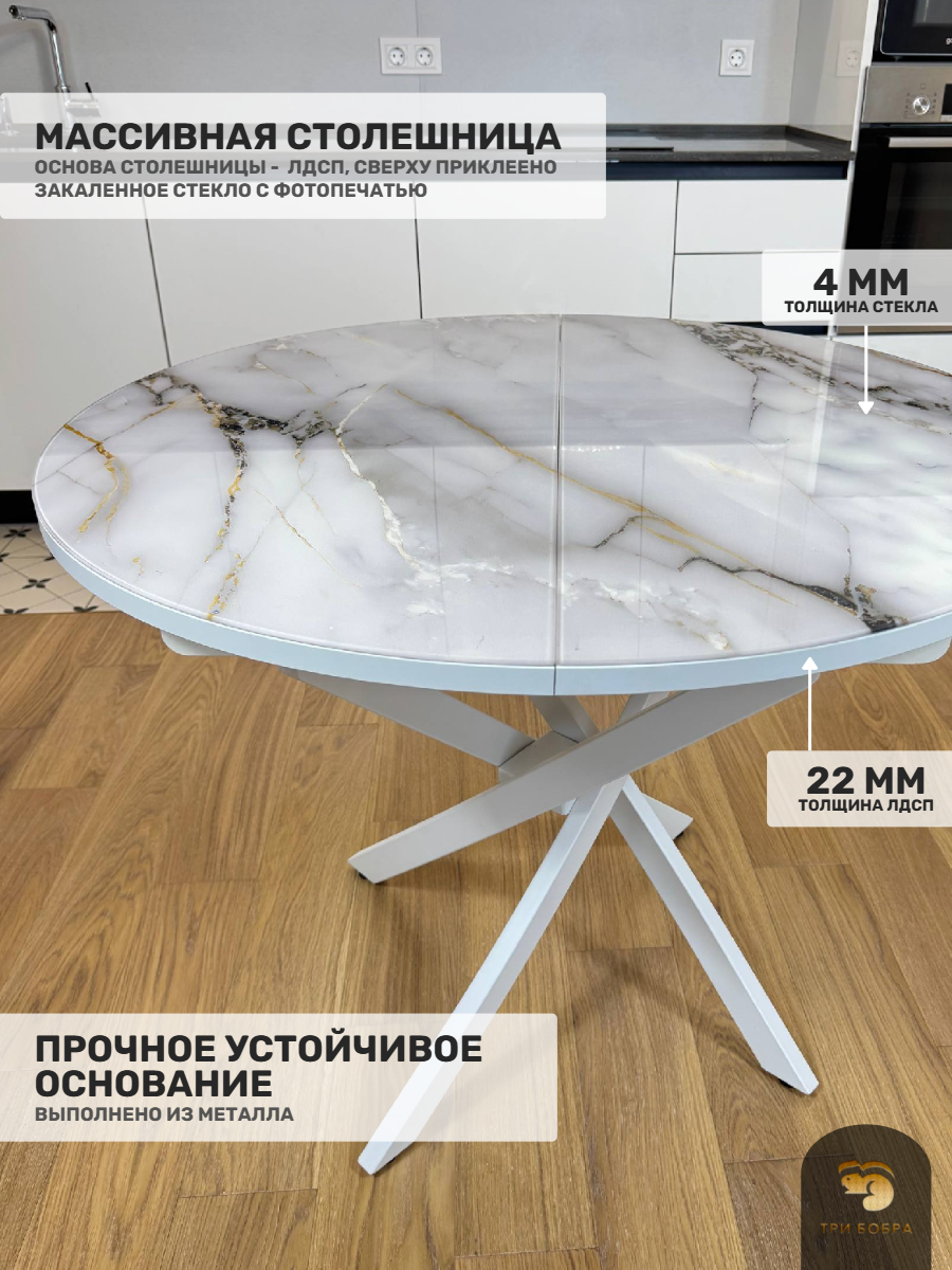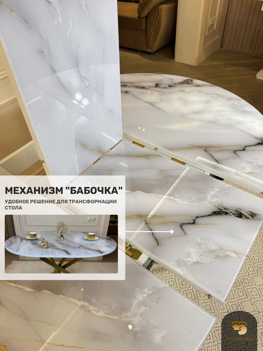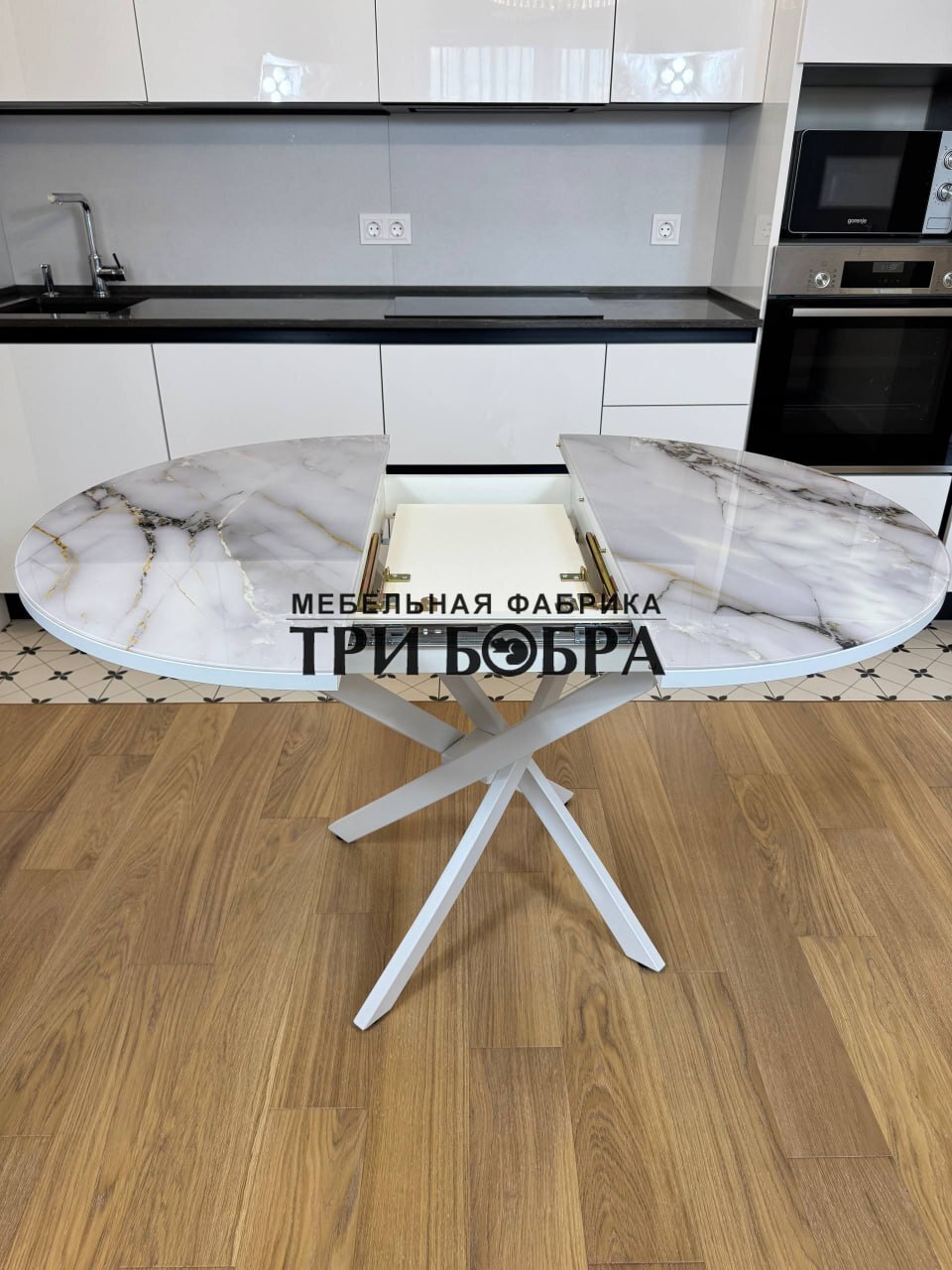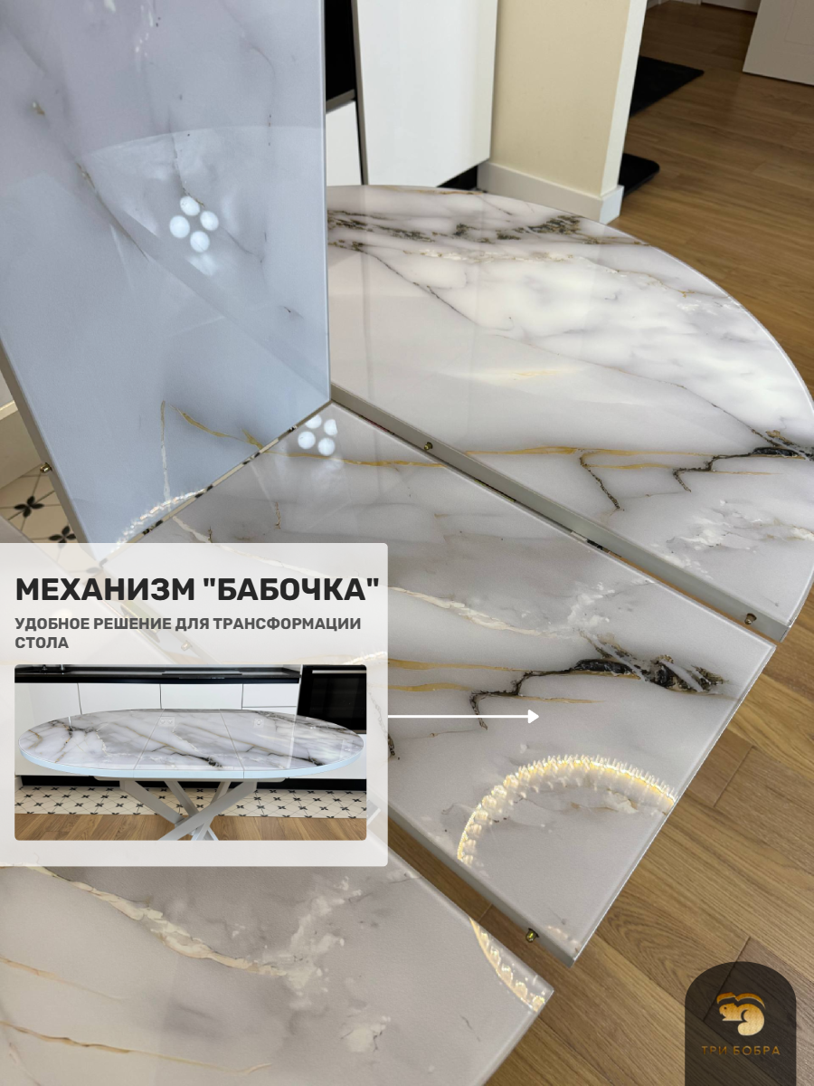 Стол круглый стеклянный "Бьянко" - настоящая находка для ценителей классики, выполненной в современной интерпретации. Технология раскладывания "бабочка" позволяет легко и без значительных усилий разложить стол одному человеку. Какой комфорт!