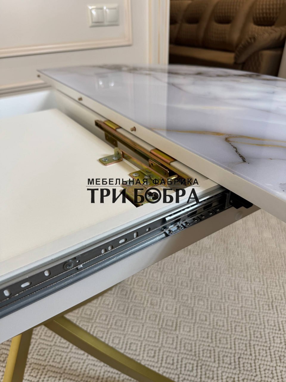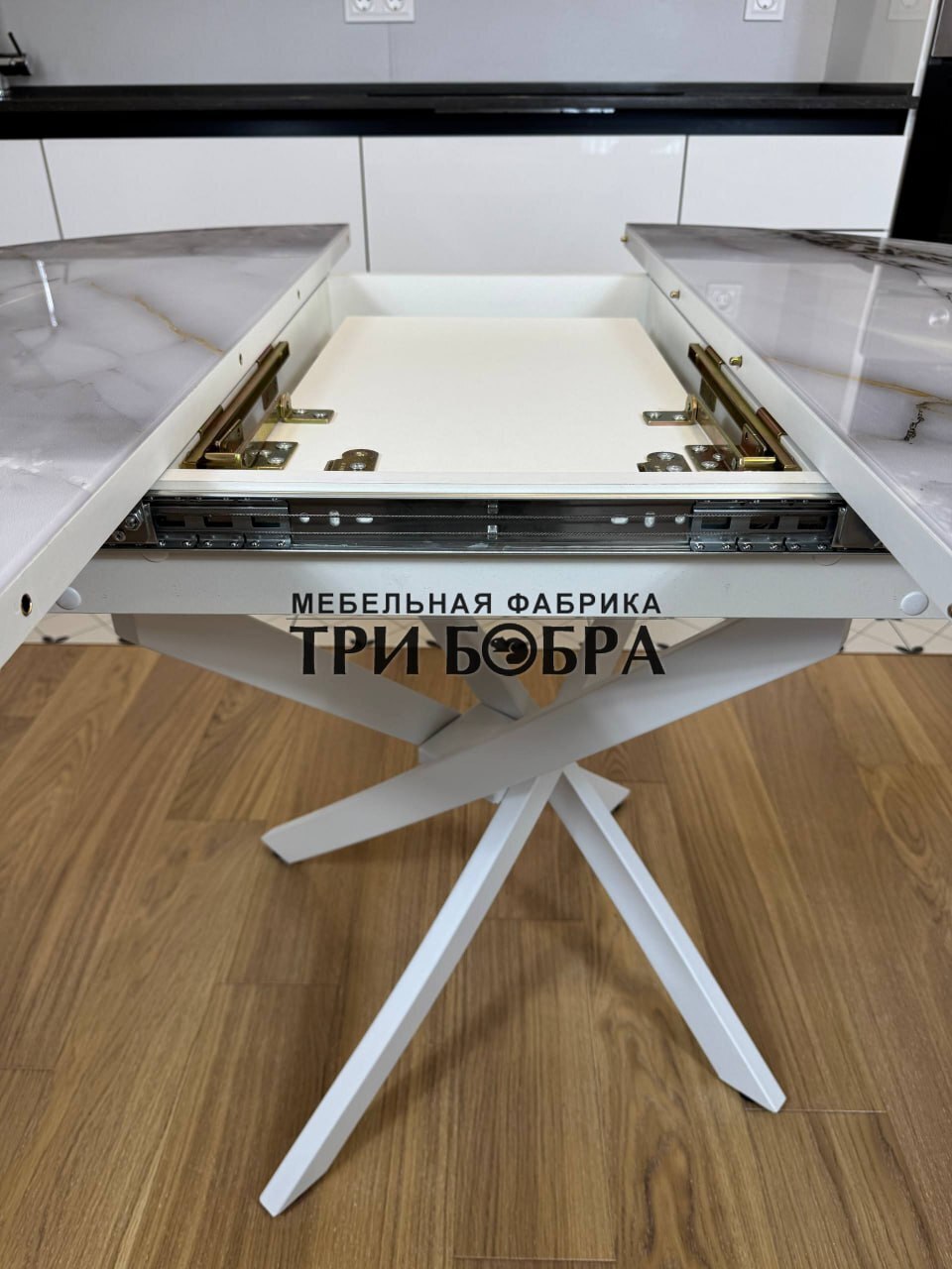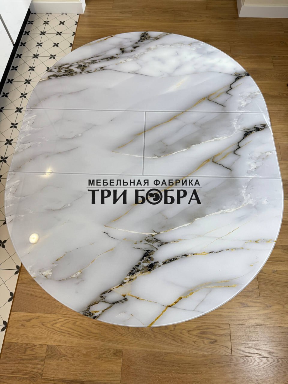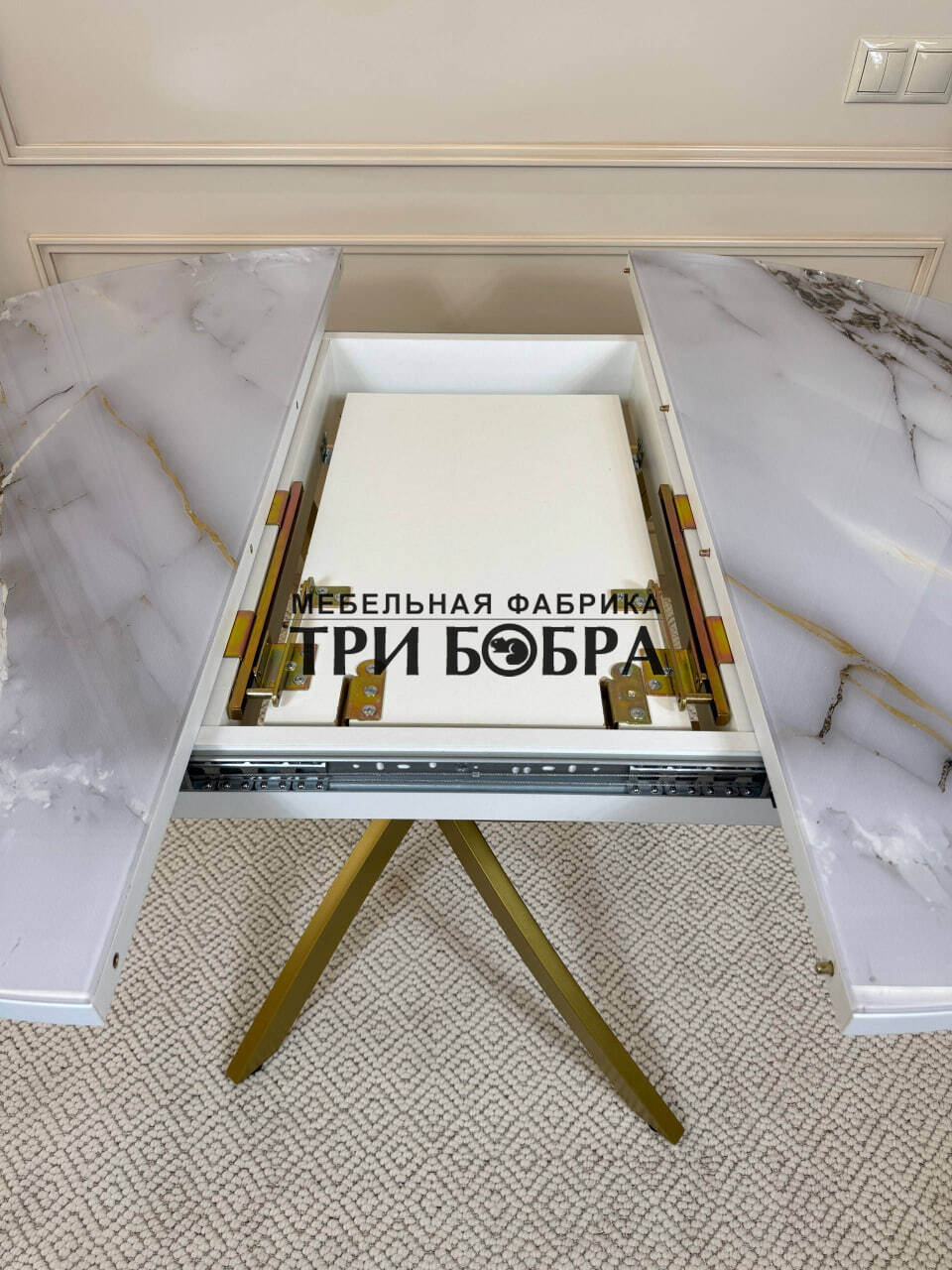 Одним из особых преимуществ этого стола является вкладка шириной 30 см, которая продолжает рисунок основной столешницы. Это добавляет столу утонченность и неповторимость.