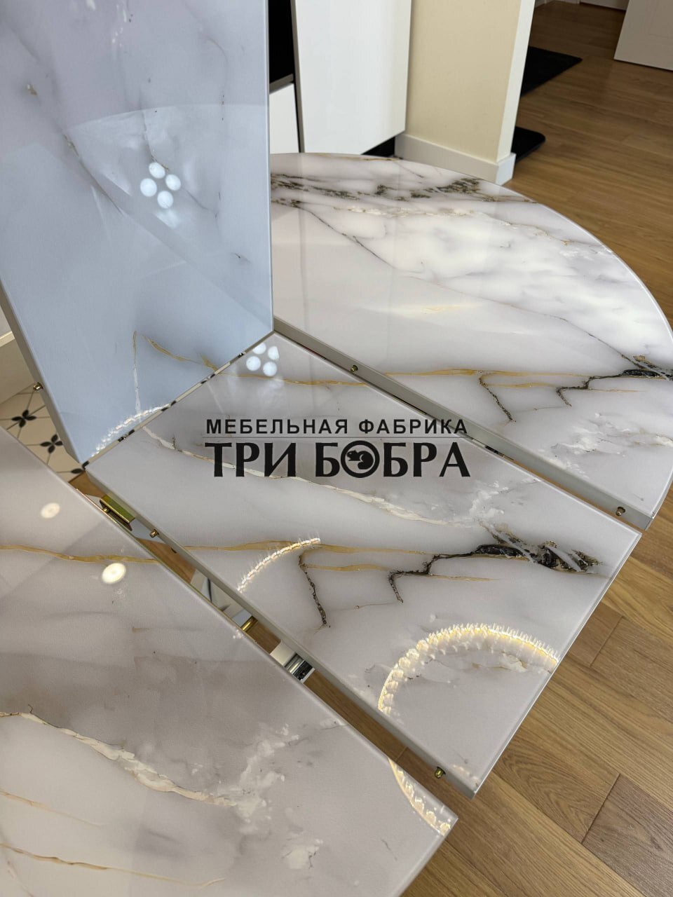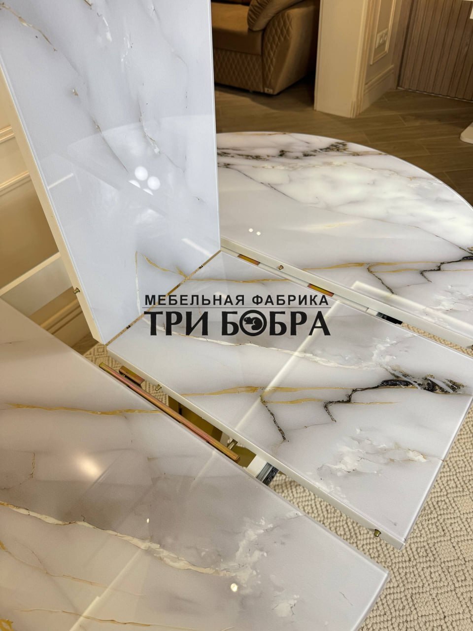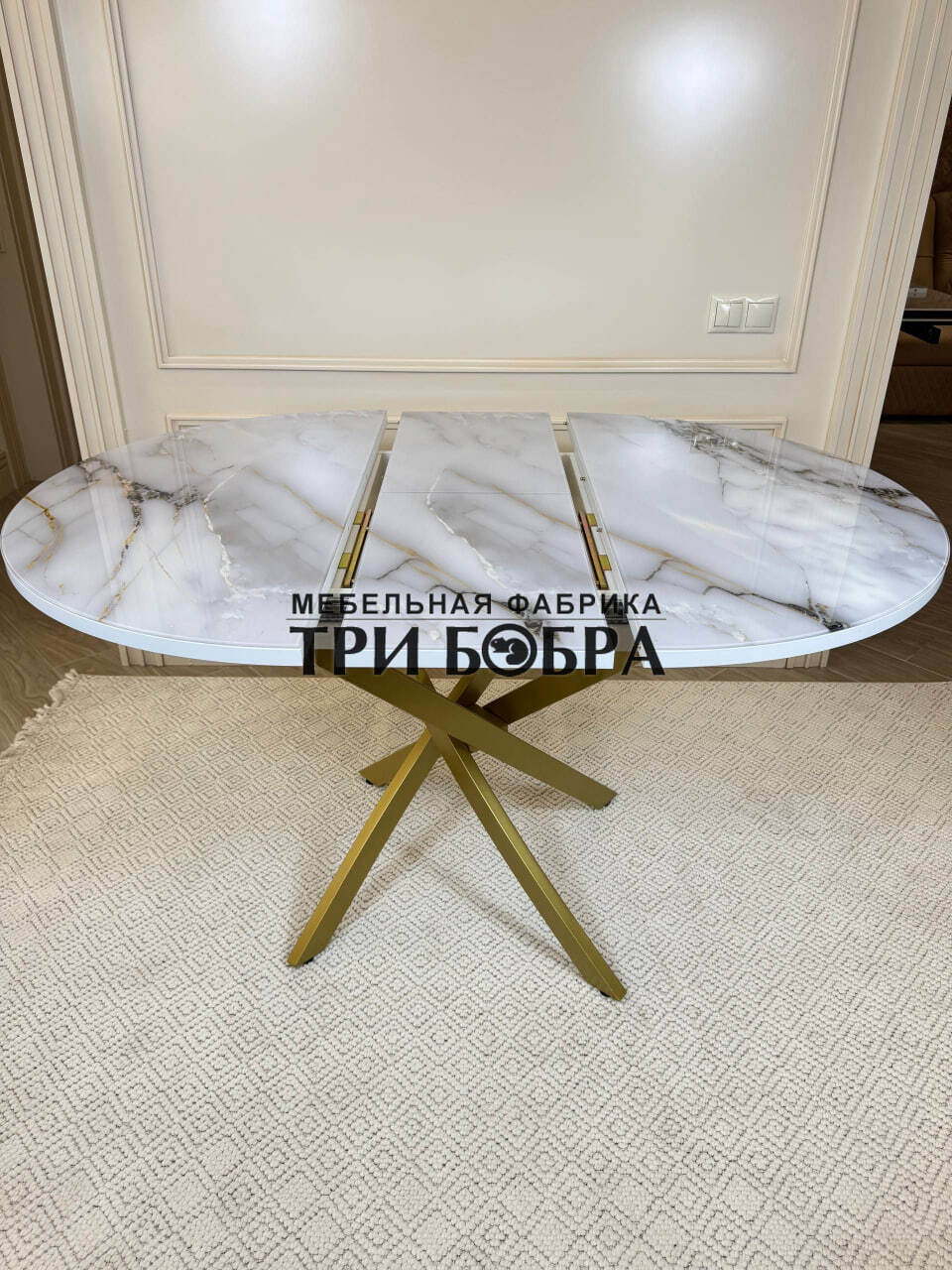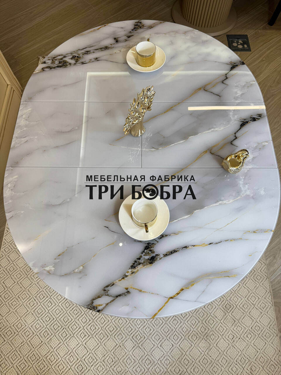 Одним из особых преимуществ этого стола является вкладка шириной 30 см, которая продолжает рисунок основной столешницы. Это добавляет столу утонченность и неповторимость.