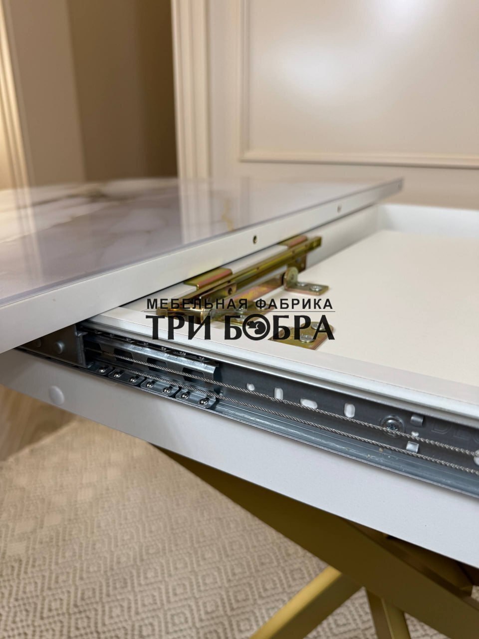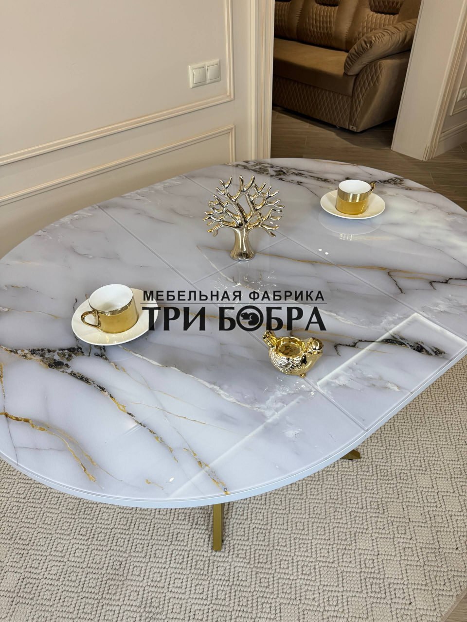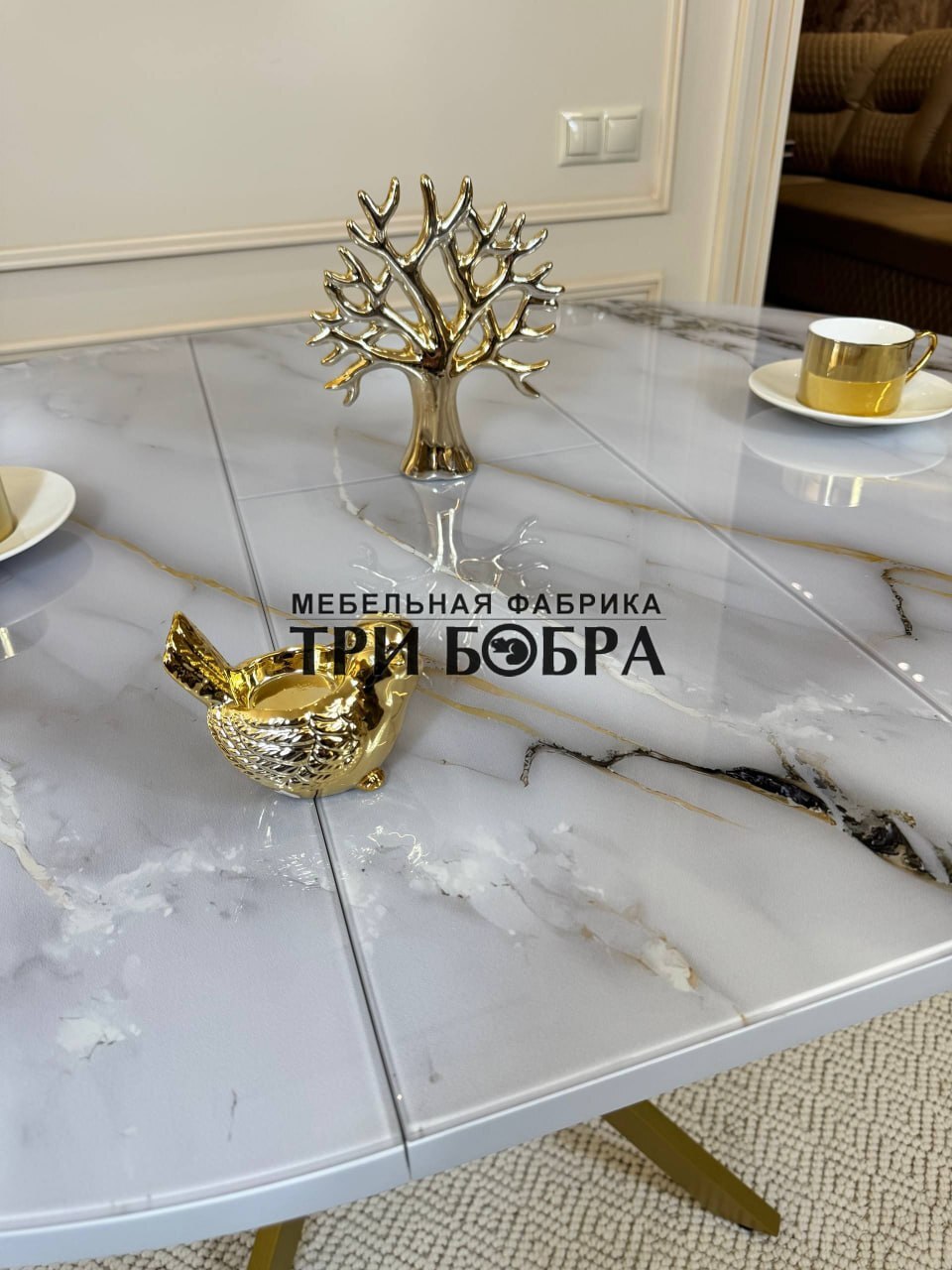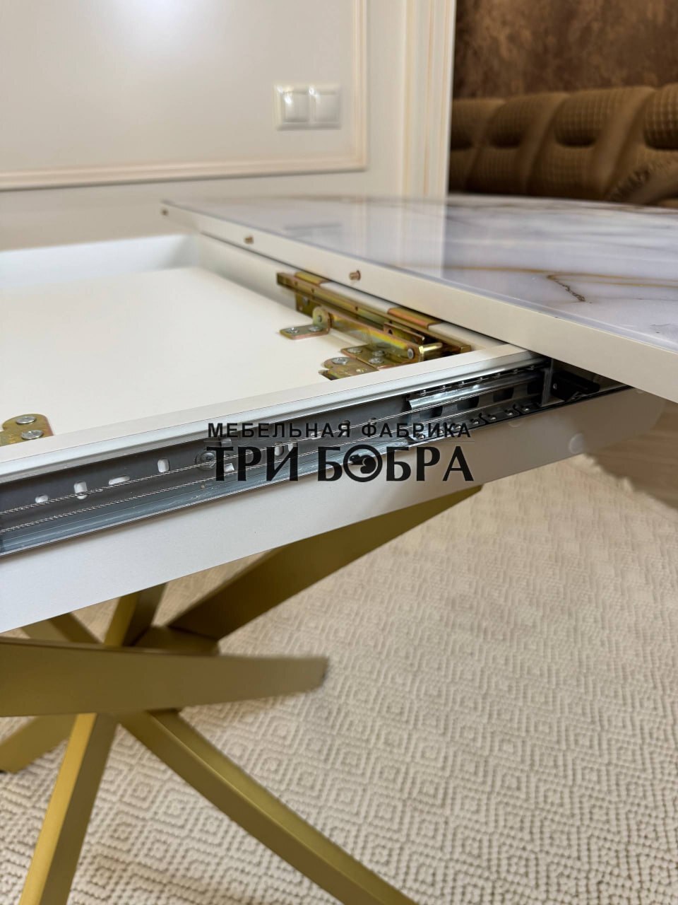Одним из особых преимуществ этого стола является вкладка шириной 30 см, которая продолжает рисунок основной столешницы. Это добавляет столу утонченность и неповторимость.