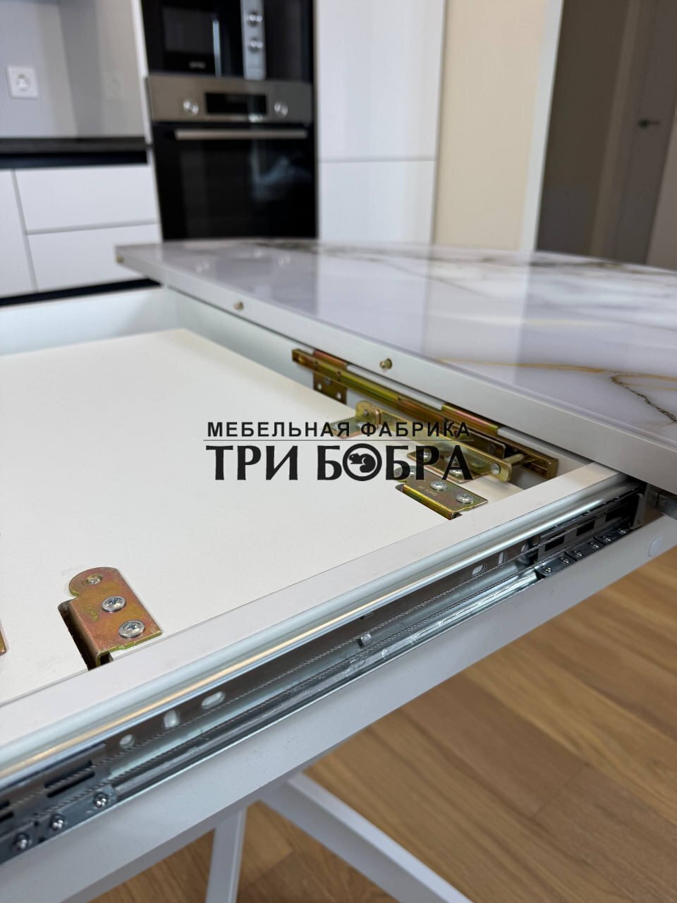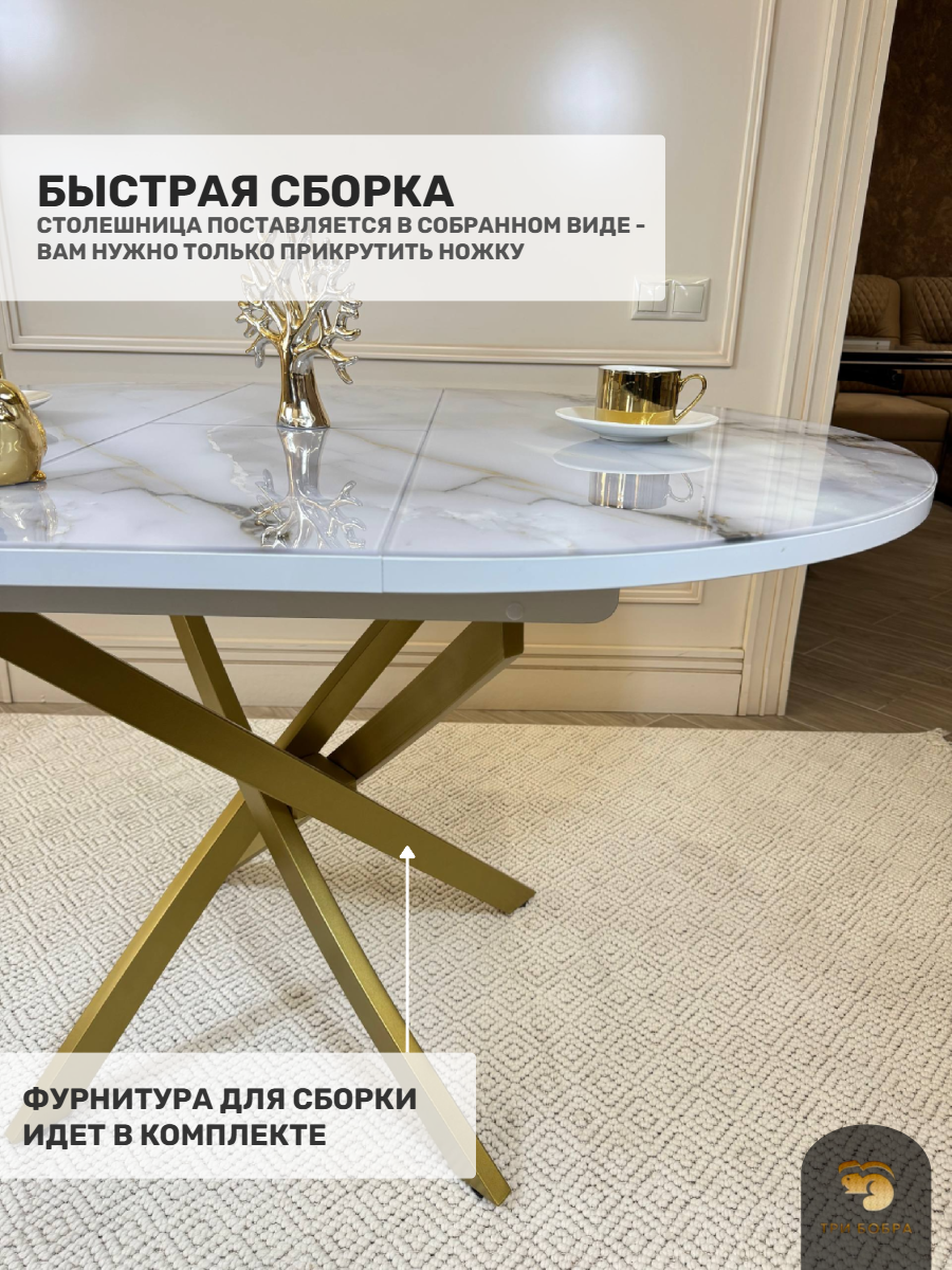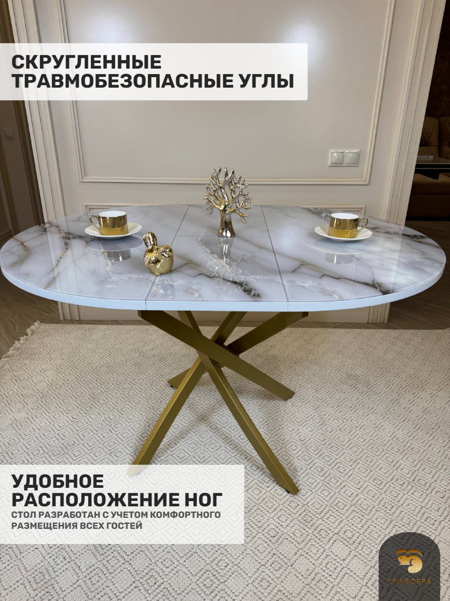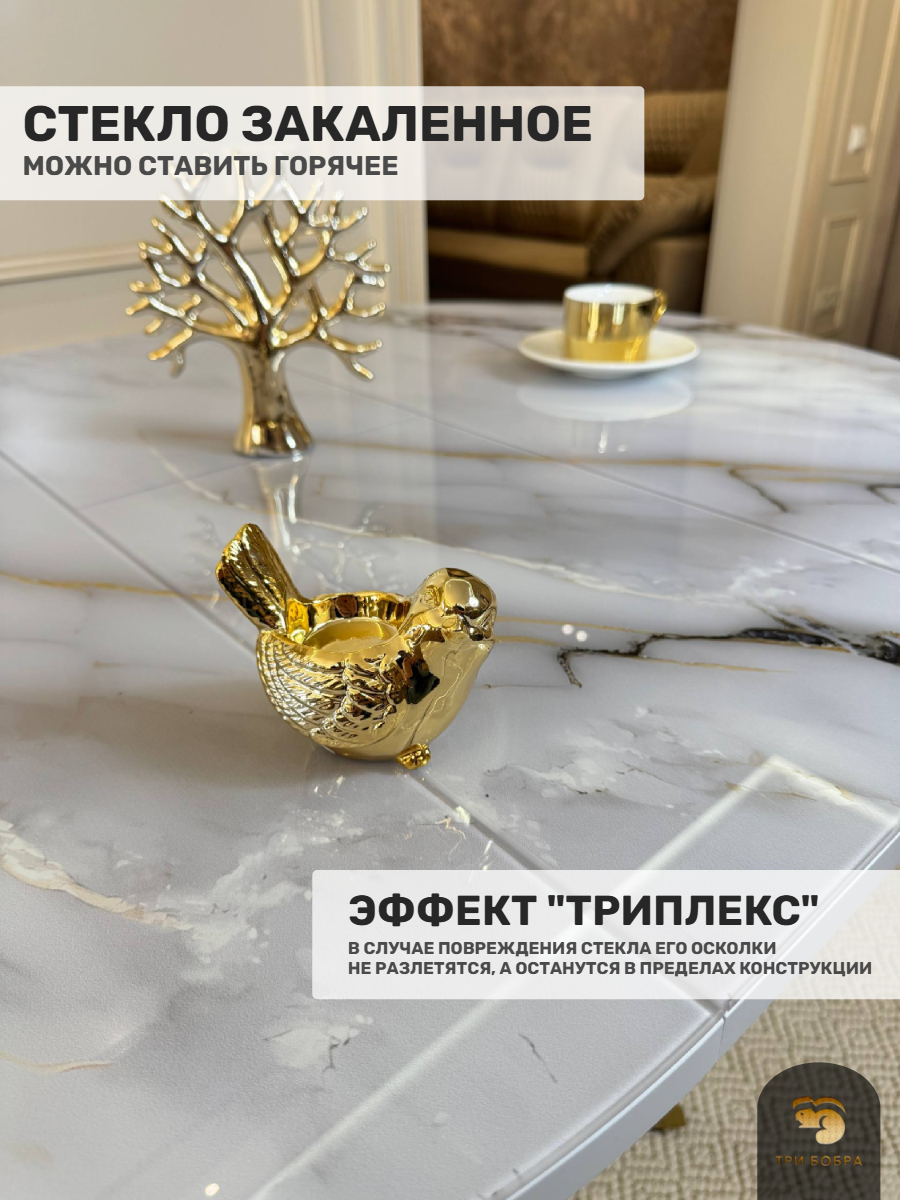 Одним из особых преимуществ этого стола является вкладка шириной 30 см, которая продолжает рисунок основной столешницы. Это добавляет столу утонченность и неповторимость.