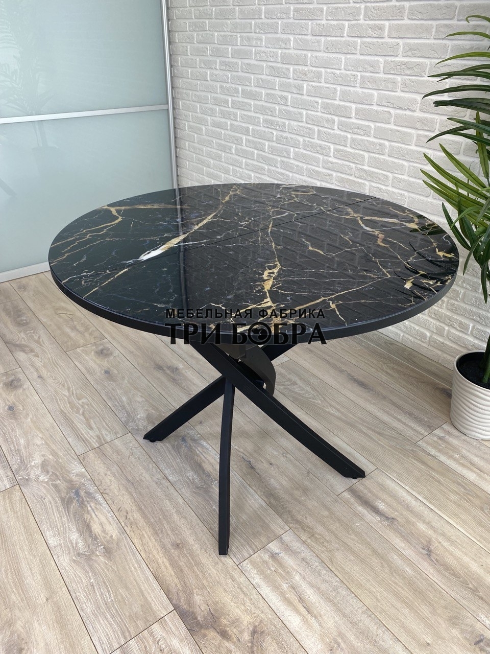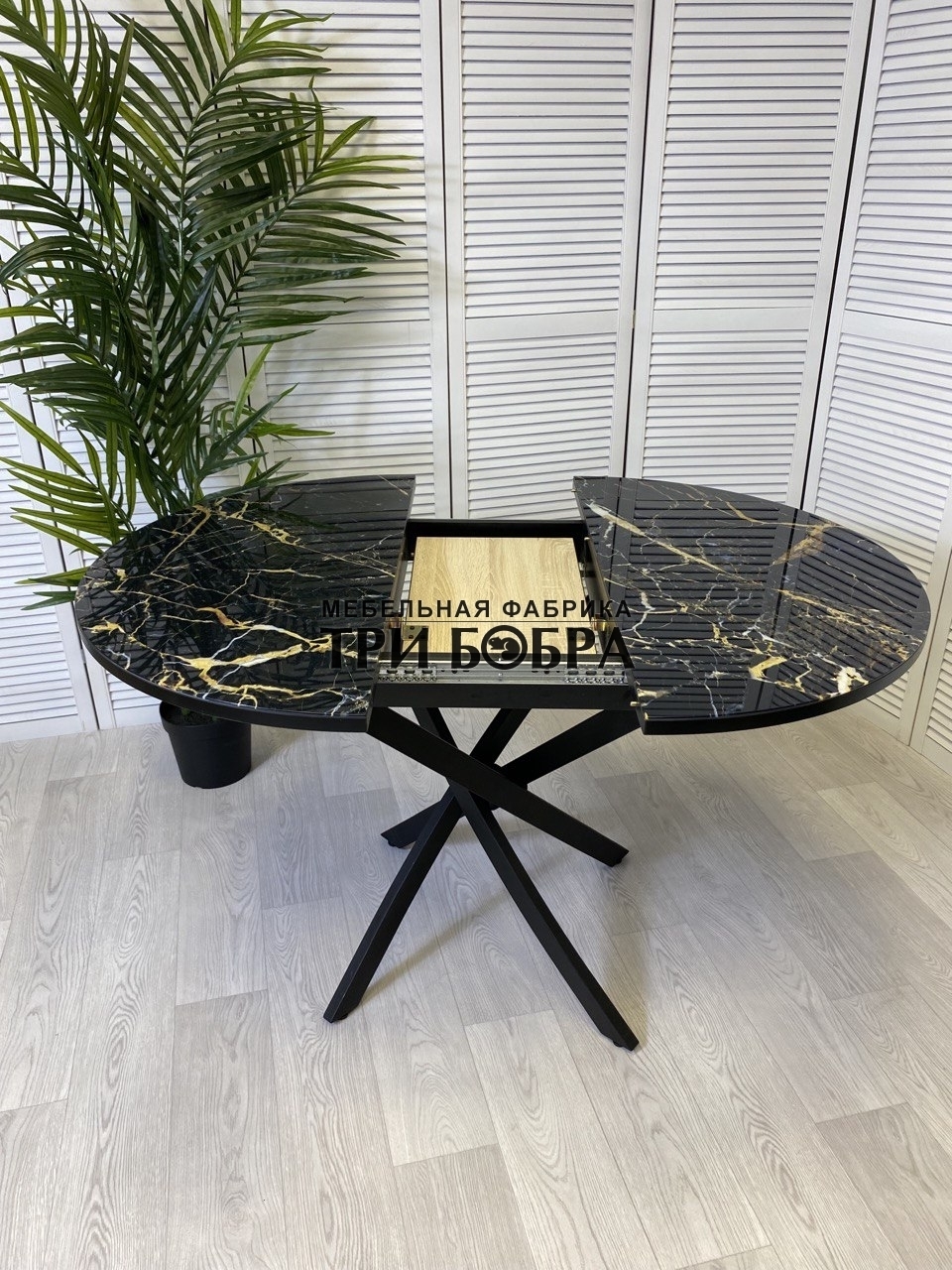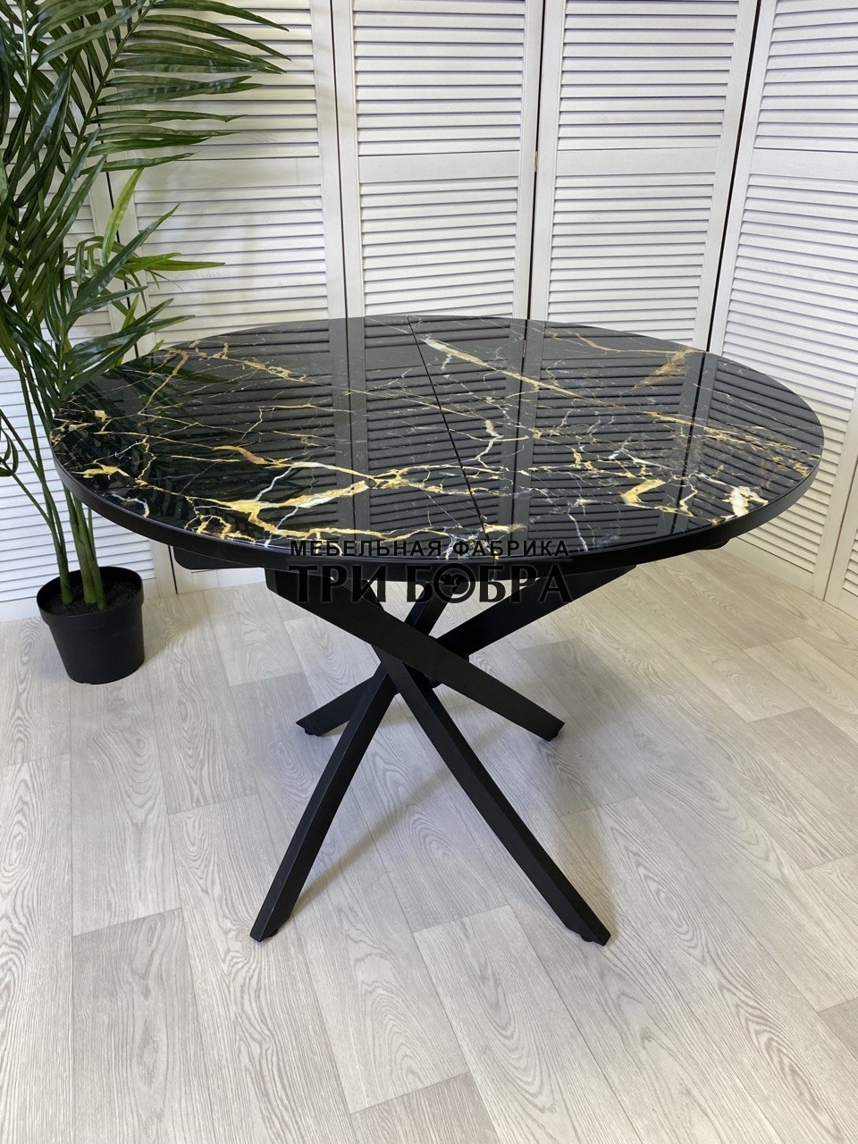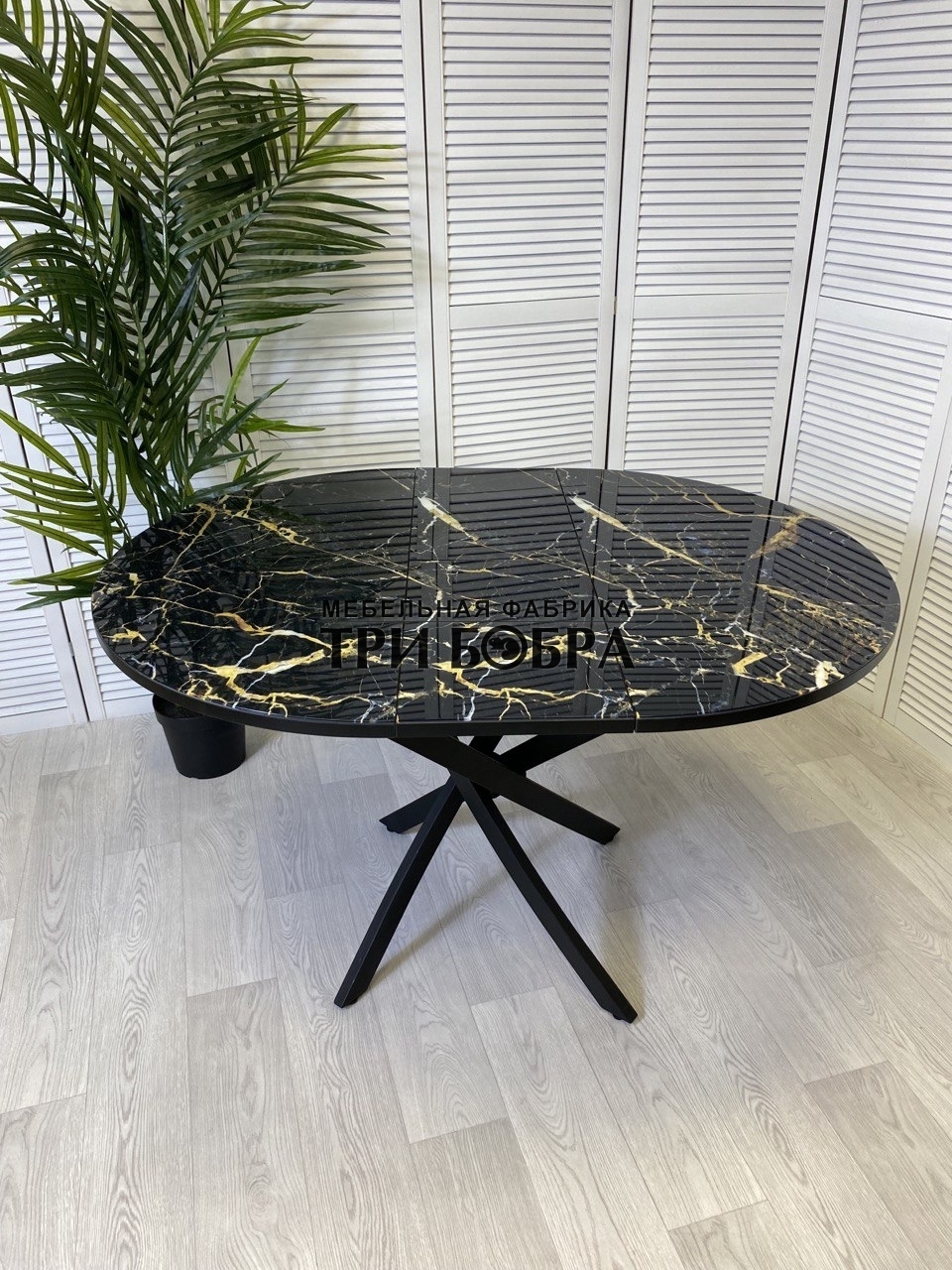 Стол круглый стеклянный "Чёрный мрамор" - настоящая находка для ценителей классики, выполненной в современной интерпретации. Технология раскладывания "бабочка" позволяет легко и без значительных усилий разложить стол одному человеку. Какой комфорт!