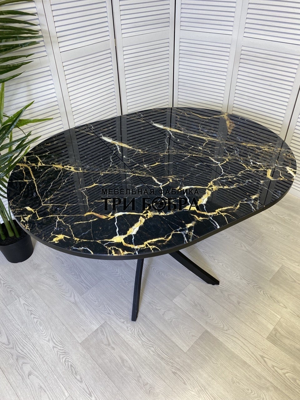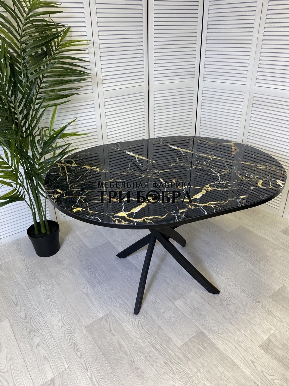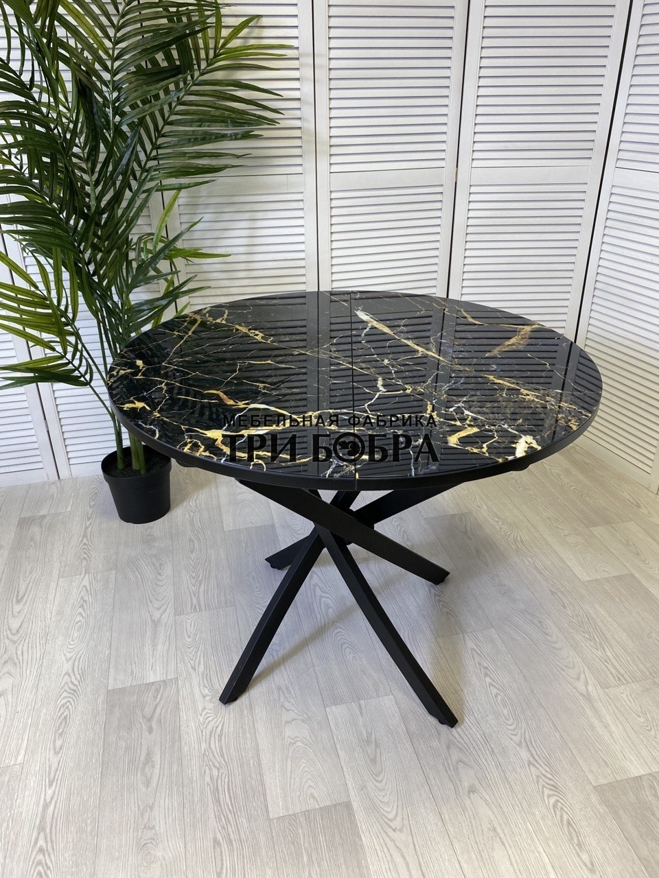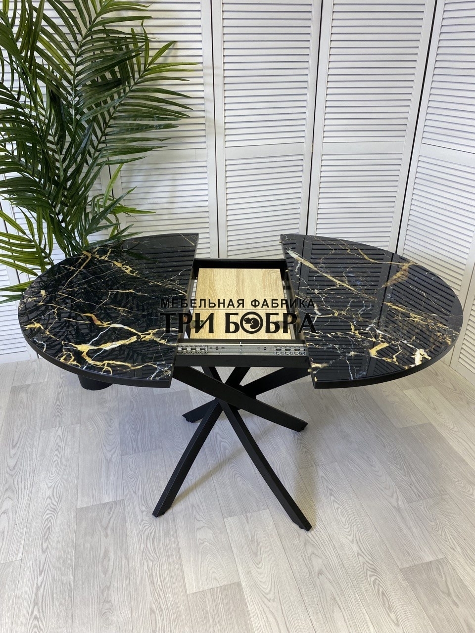 Стол круглый стеклянный "Чёрный мрамор" - настоящая находка для ценителей классики, выполненной в современной интерпретации. Технология раскладывания "бабочка" позволяет легко и без значительных усилий разложить стол одному человеку. Какой комфорт!