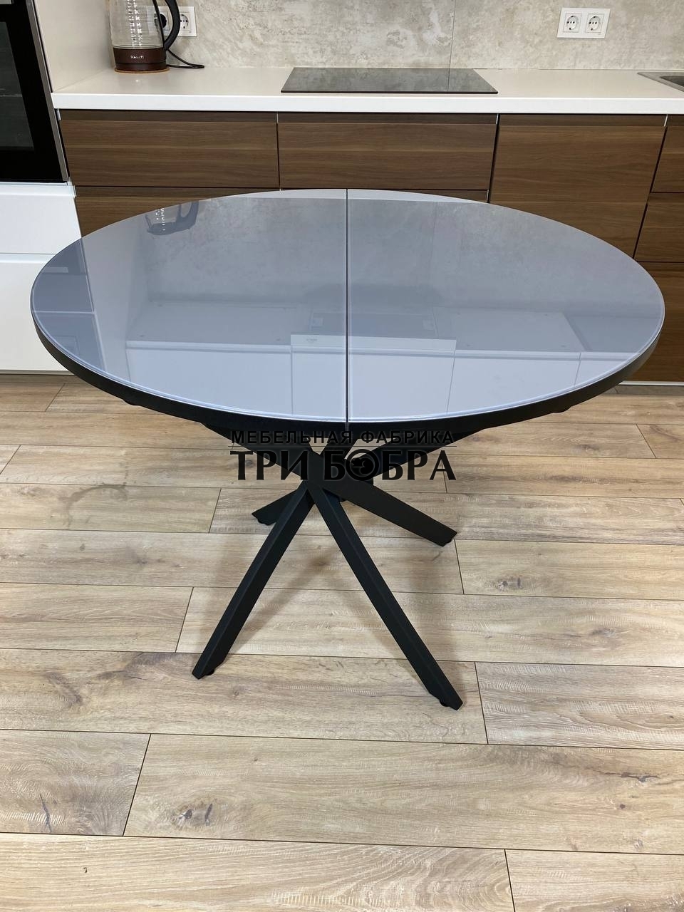 Стол "Серый Металлик" - это классический раздвижной круглый стол в современном исполнении. Его особенностью является удобный механизм раскладывания "бабочка", который позволяет одному человеку легко разложить стол без прикладывания значительных усилий. Отличительной чертой этого стола является вкладка размером 30 см, которая продолжает рисунок столешницы.