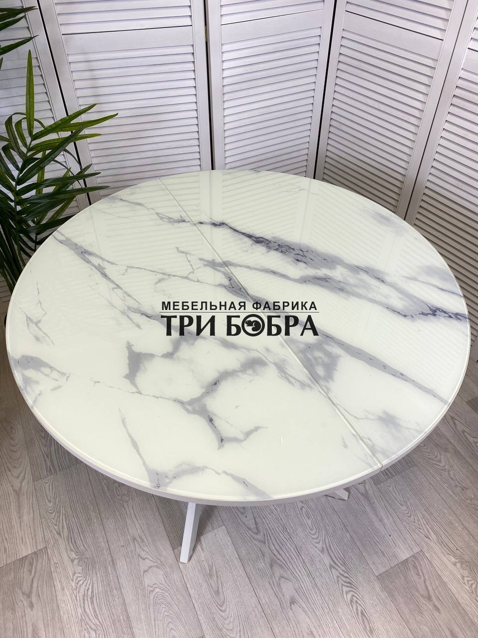 Стол "Серый Мрамор 262" - это классический раздвижной круглый стол в современном исполнении. Его особенностью является удобный механизм раскладывания "бабочка", который позволяет одному человеку легко разложить стол без прикладывания значительных усилий. Отличительной чертой этого стола является вкладка размером 30 см, которая продолжает рисунок столешницы.