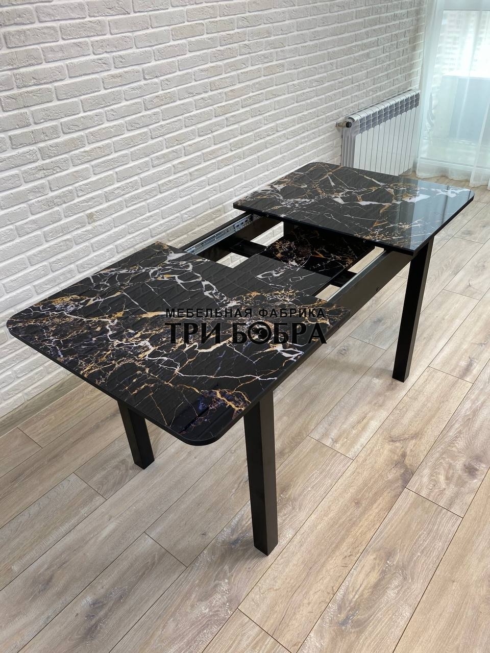 Стол стеклянный раздвижной "Чёрный мрамор" - это не только прекрасное дополнение к вашему интерьеру, но и практичное решение для вашего обеденного пространства.