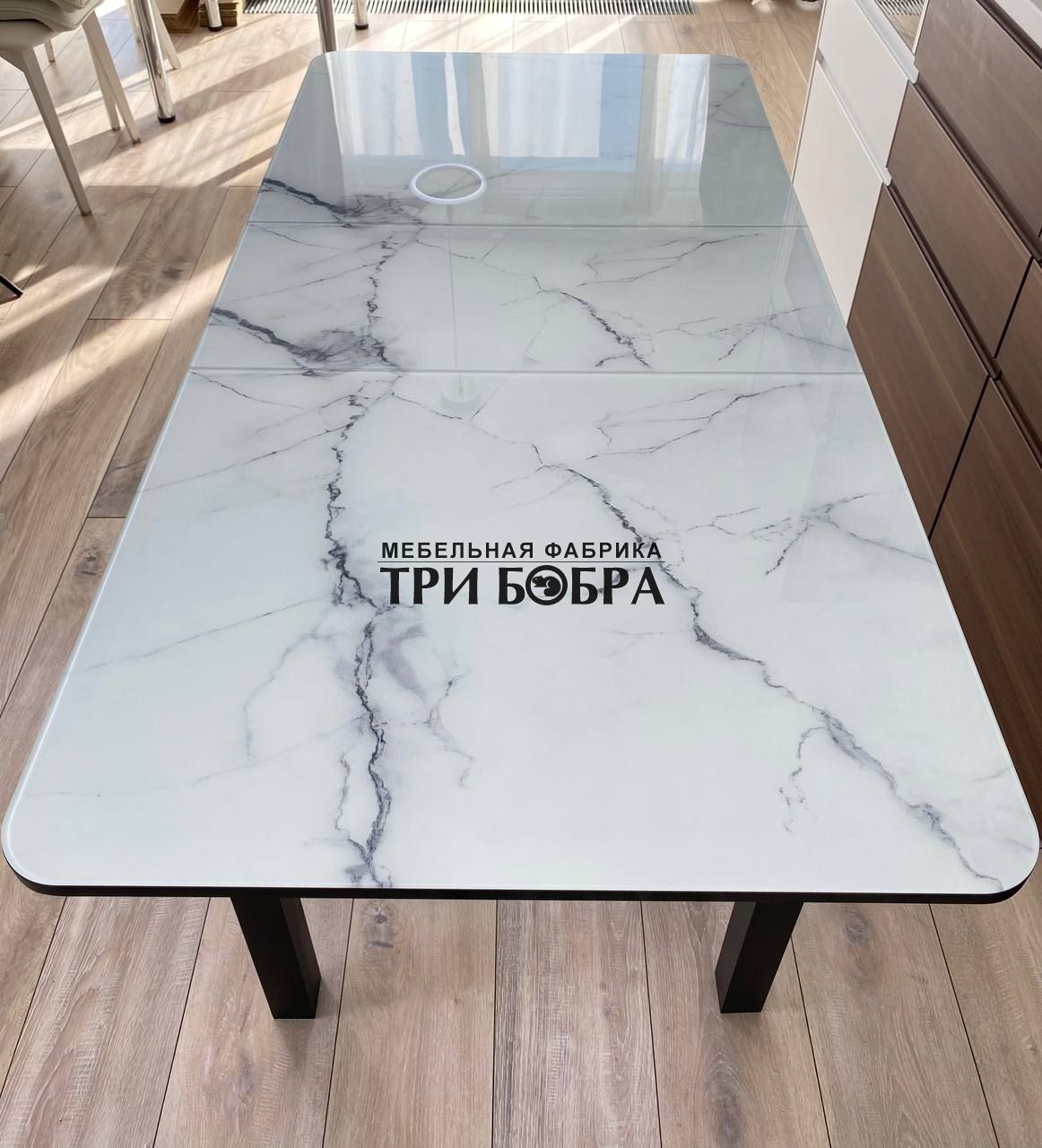 Особенностью стола стеклянного раздвижного "Итальянский мрамор" является его удобный механизм раскладывания "бабочка". Этот механизм позволяет увеличить размеры стола в несколько раз, чтобы вместить больше гостей. Просто раздвиньте столешницу в стороны, и ваш стол превратится из компактного вместительного. Это особенно удобно в случаях, когда вы приглашаете большую компанию или ожидаете гостей.